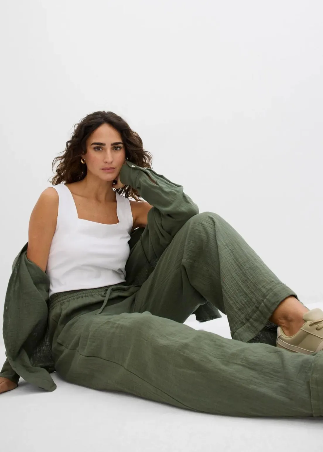 Musselin-Hose mit ausgefranstem Saum aus reiner Baumwolle