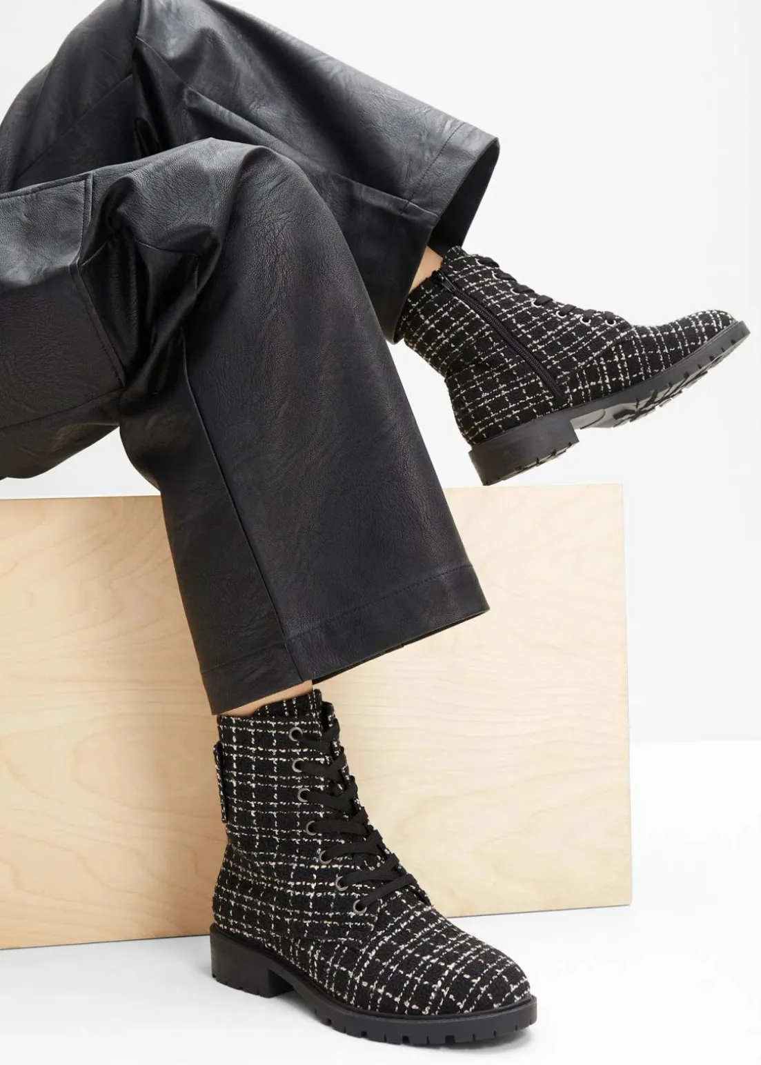 Lässiger Schnür Boot in Boucléoptik