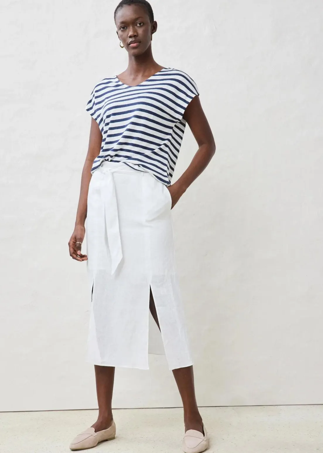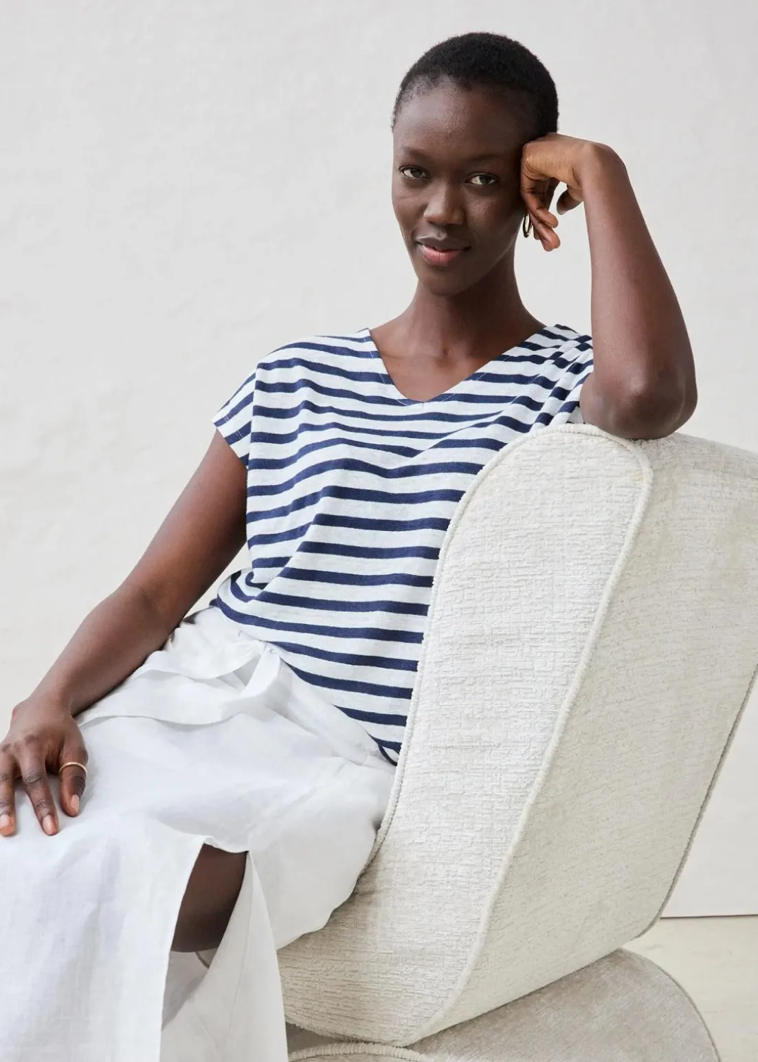 Gestreiftes Leinen-Shirt mit V-Ausschnitt vorne und am Rücken