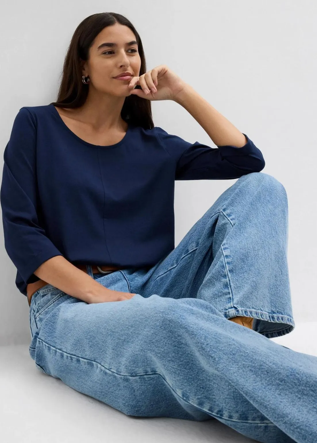 Weit geschnittenes Shirt mit 3/4 Arm aus reiner Baumwolle