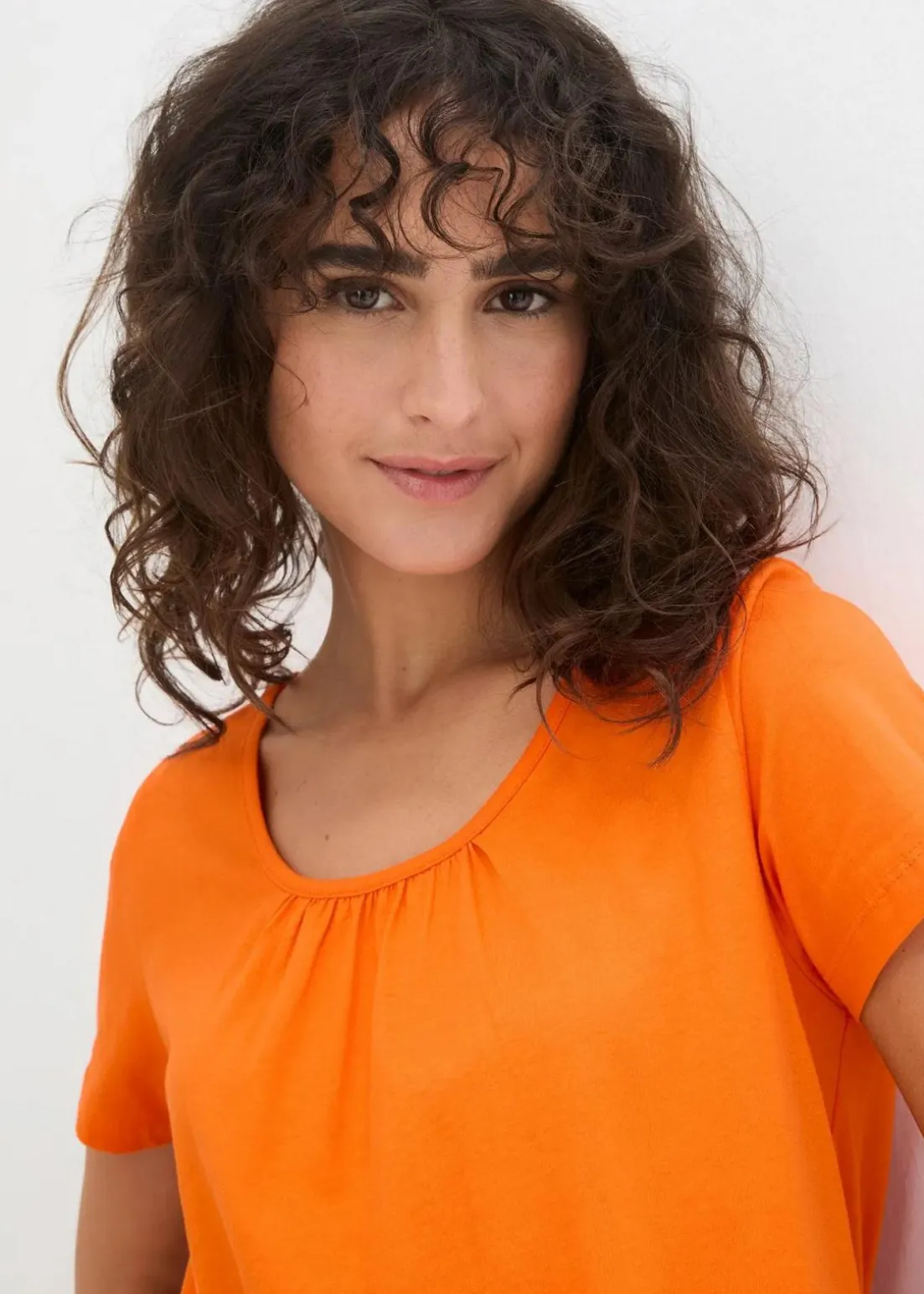 Shirt mit elastischem Gummibund am Saum und Rundhalsausschnitt