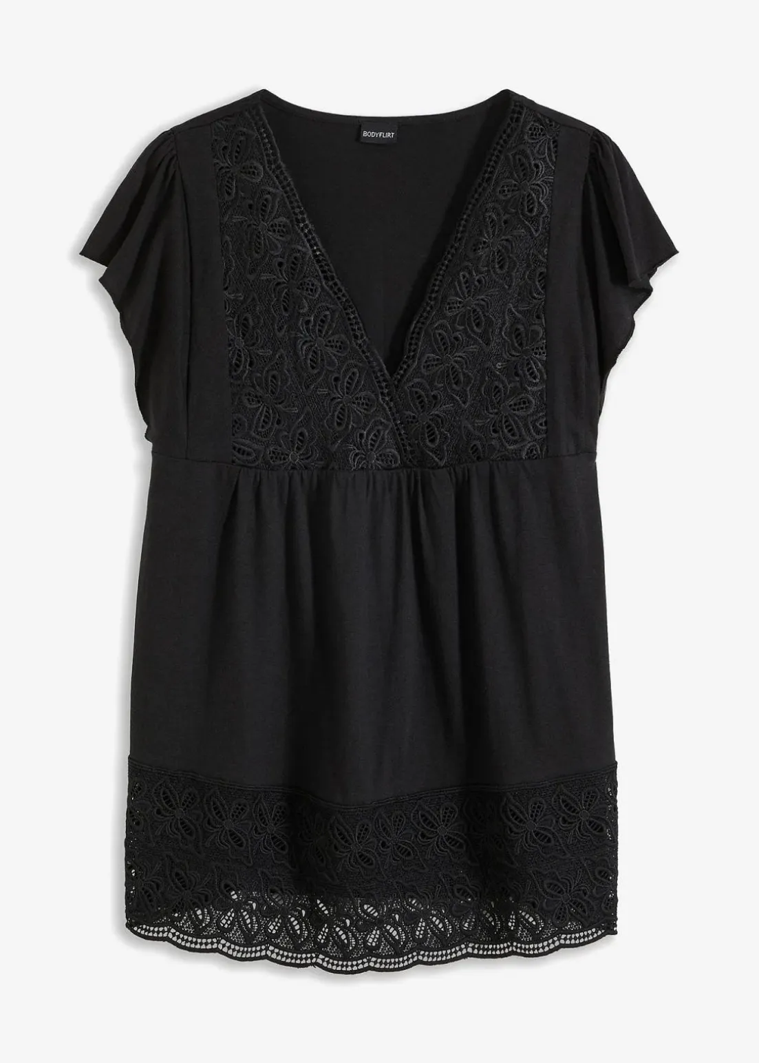 Shirt mit Spitzen-Ausschnitt und Spitze vorne