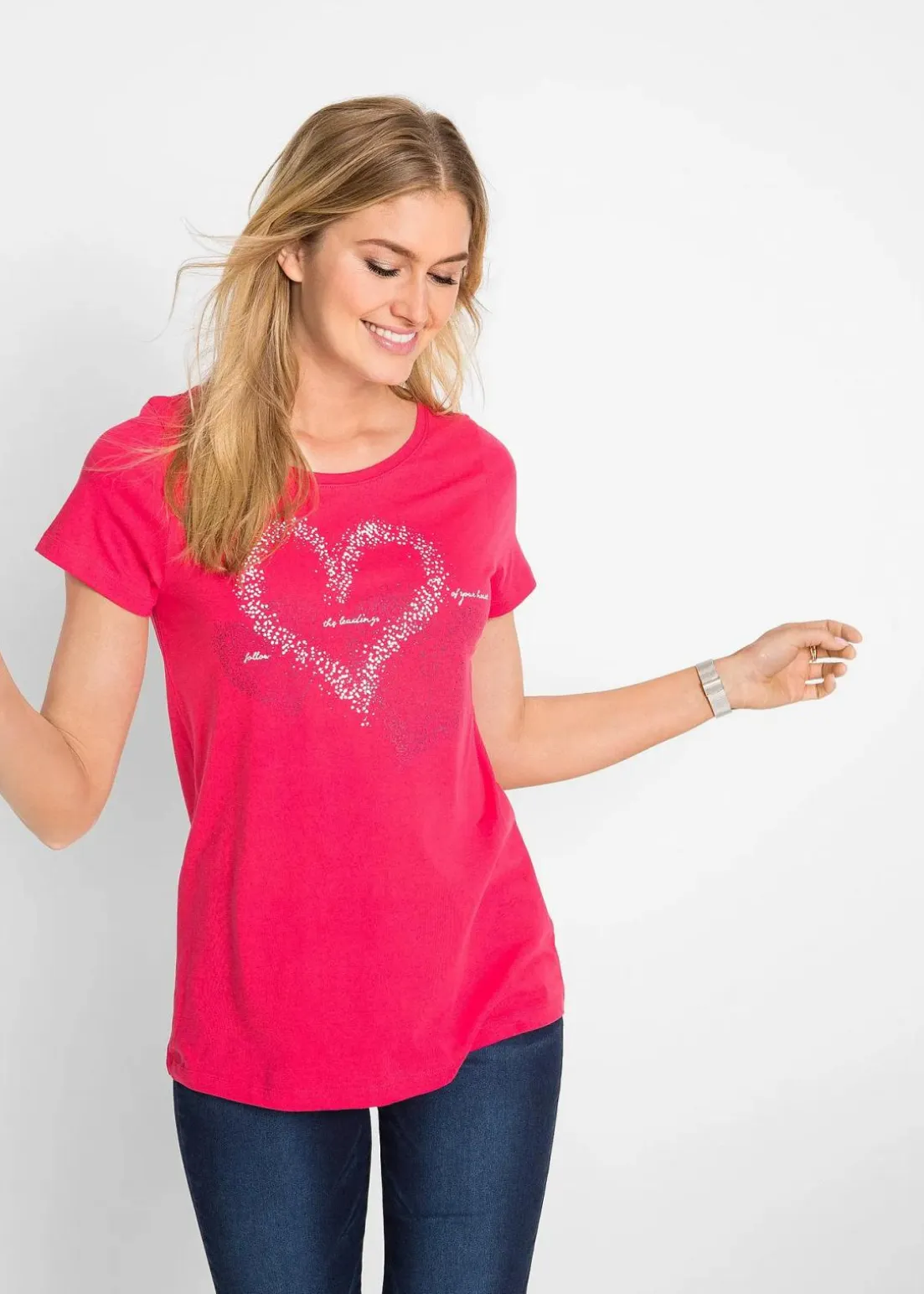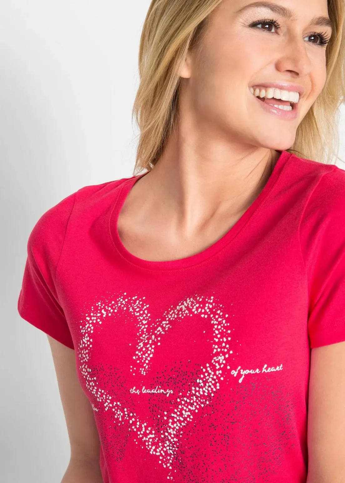 Lässiges Kurzam-Shirt mit dekorativem Herzdruck