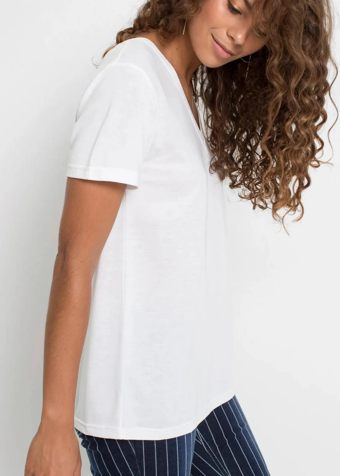 Ein angesagter Mix aus Basics und besonderen Lieblingsstücken kreiert einen coolen Style. Dieses trendy Shirt gehört zur ersten Kategorie. Das Kurzarm-Modell ist facettenreich einsetzbar und punktet mit seiner lässigen Passform. Ein legerer Look gelingt zu Jeansshorts und Sneakern. Zu wild gemusterten Hosen oder Röcken setzt das Shirt mit V-Ausschnitt einen beruhigenden Akzent.