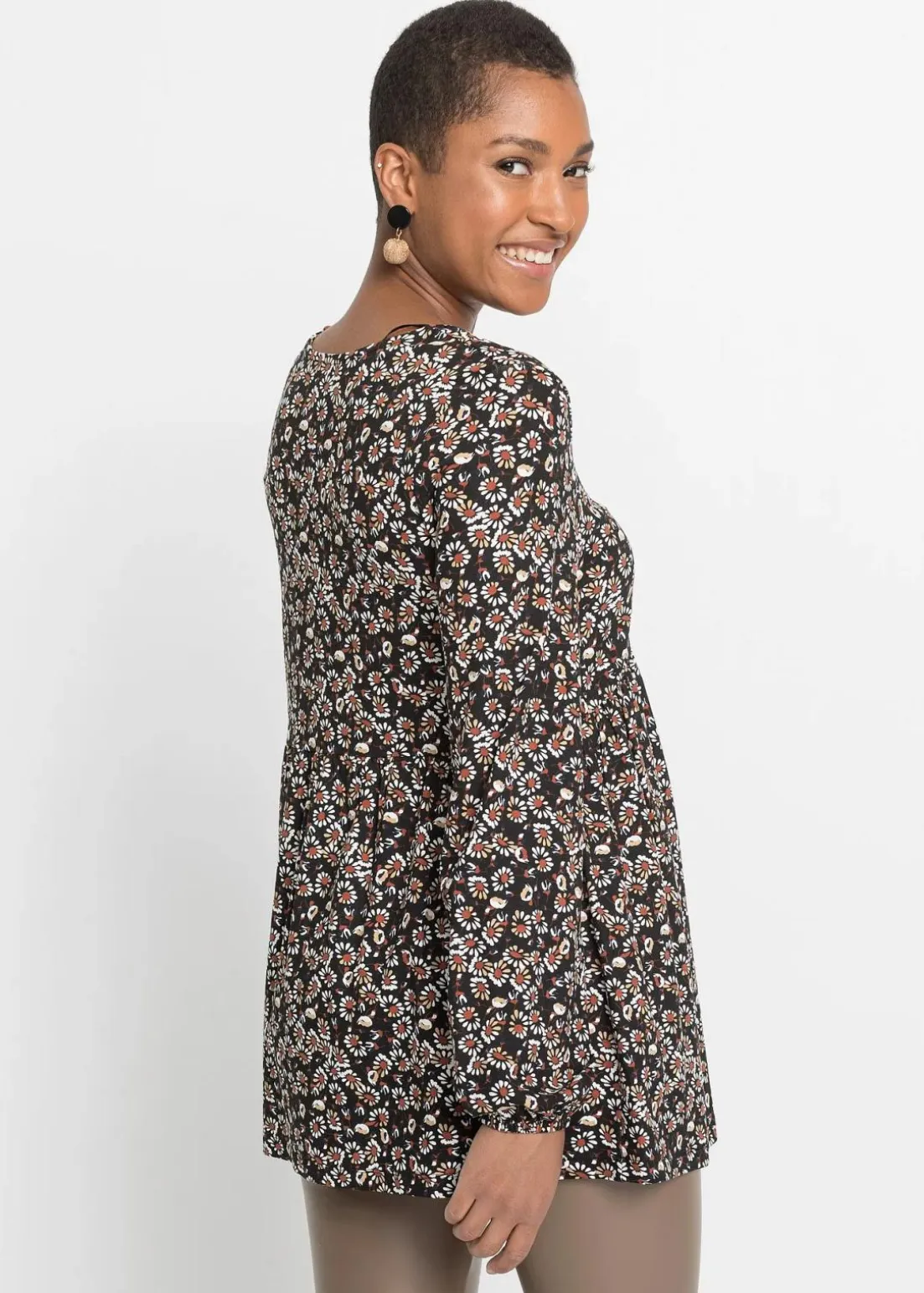 Geblümte Shirtbluse mit langen Ärmeln und V-Ausschnitt