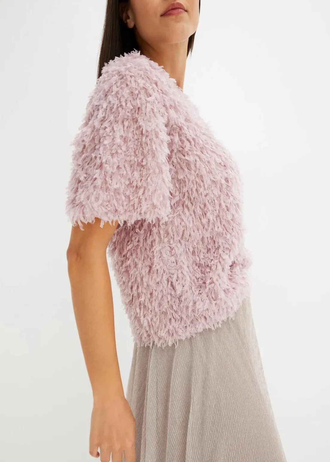 modische Shirtbluse mit besonderem Material und Rundhals-Ausschnitt