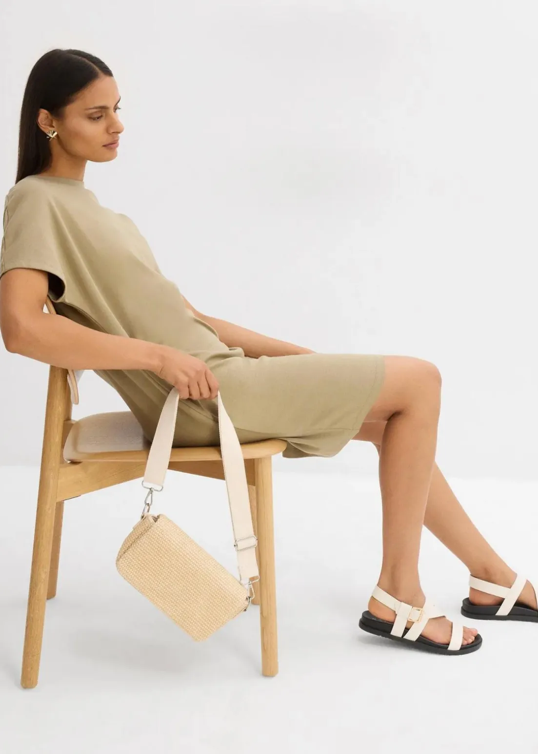 T-Shirtkleid mit Fledermausärmeln und Teilungsnähten vorne