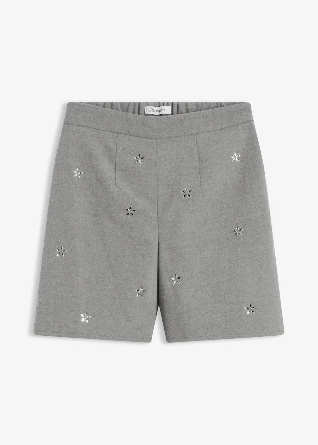 Kurze Shorts aus elastischem Material, Glitzersteinen und Komfortbund hinten