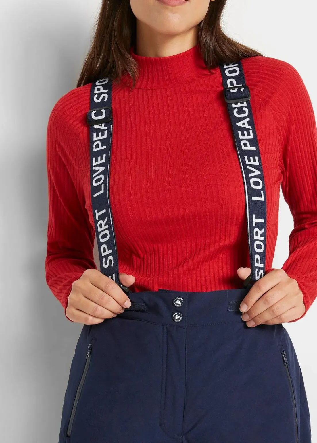Wärmende Skihose wasser- und winddicht mit Trägern und Schneefang, Straight Fit