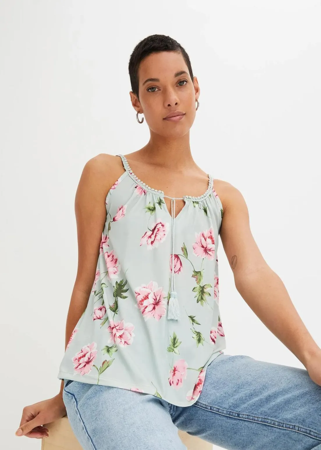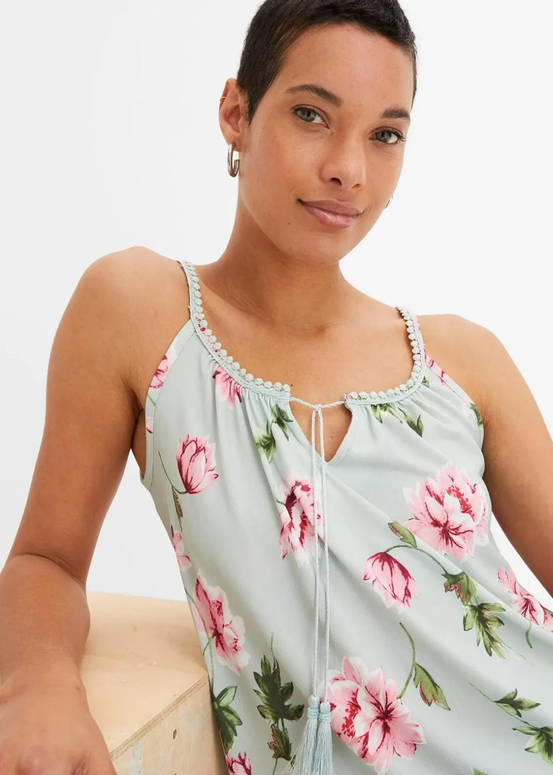 - Passformvorteile:betont das Dekolleté, hüftbedeckend, mehr Komfort durch Stretch, Vorderverschluss