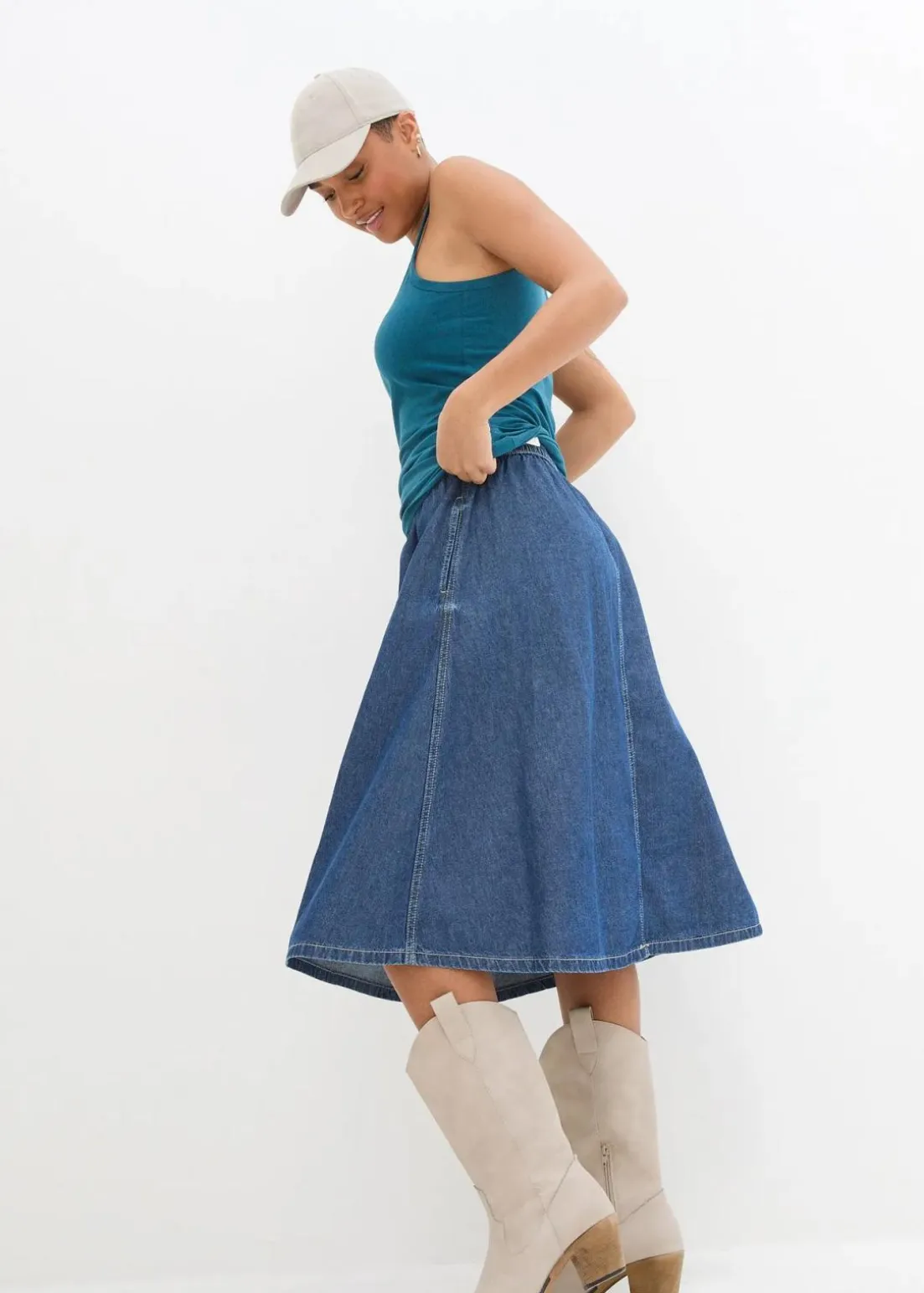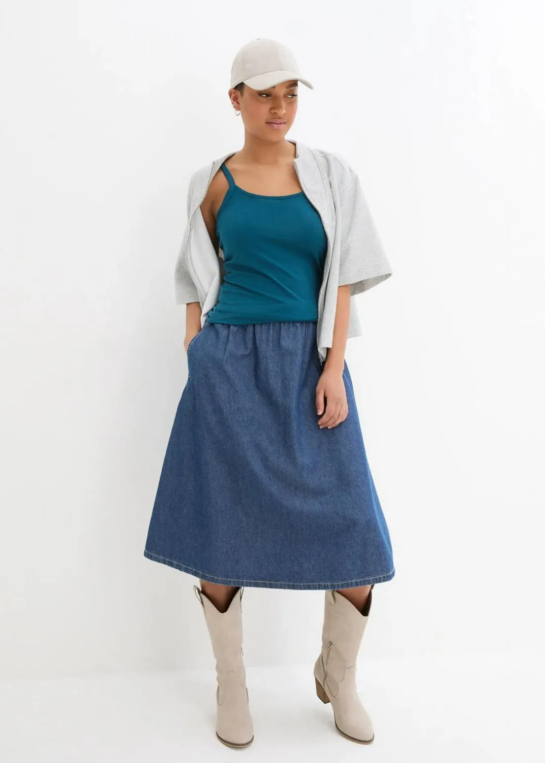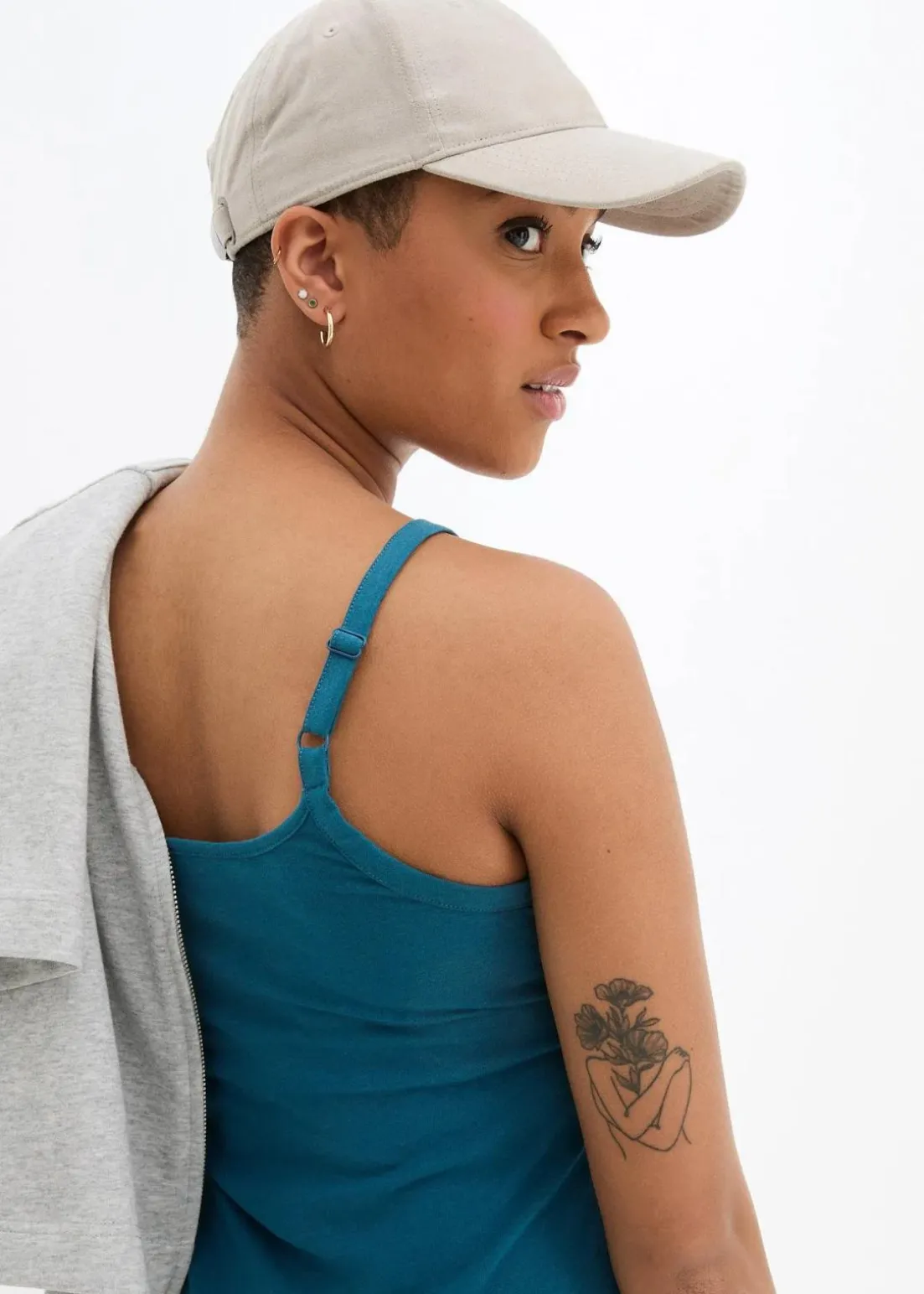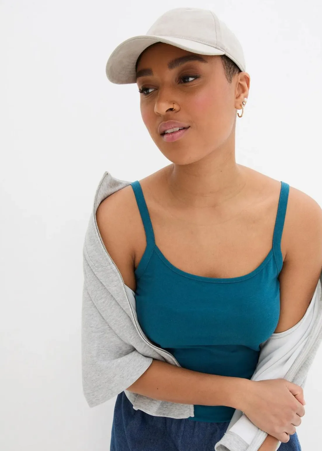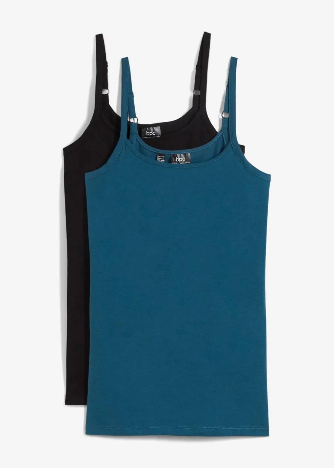 Spaghetti-Top mit langem Schnitt aus Baumwolle, 2-er-Pack