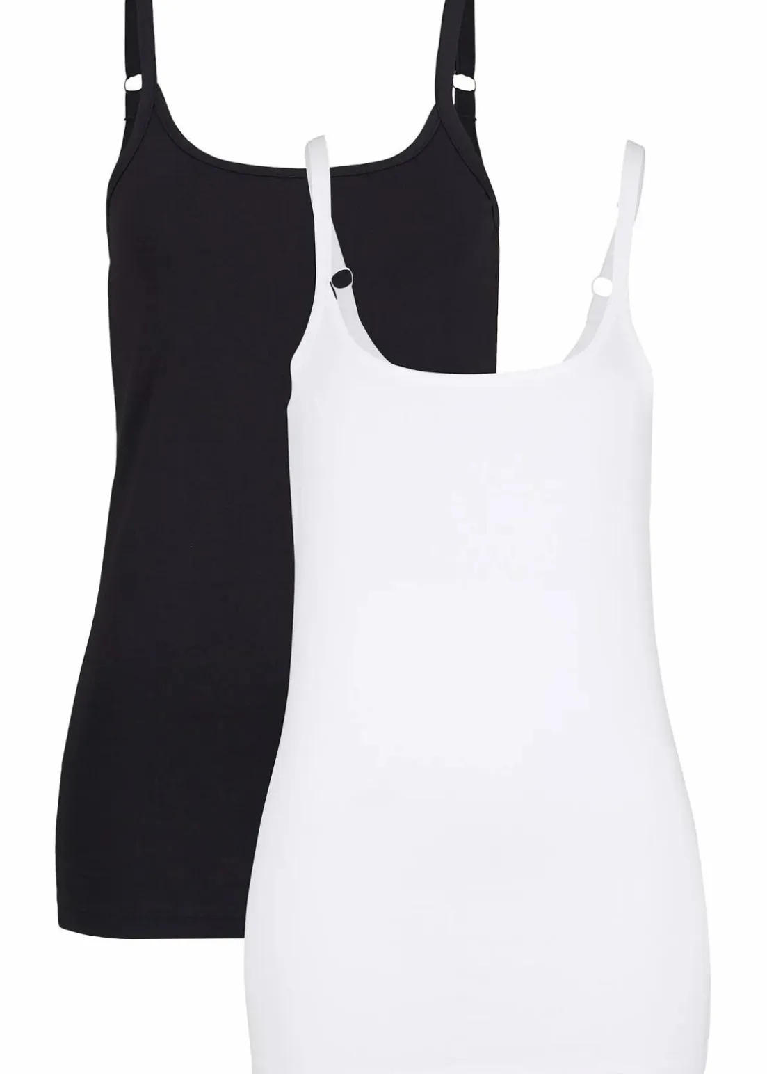 Spaghetti-Top mit langem Schnitt aus Baumwolle, 2-er-Pack
