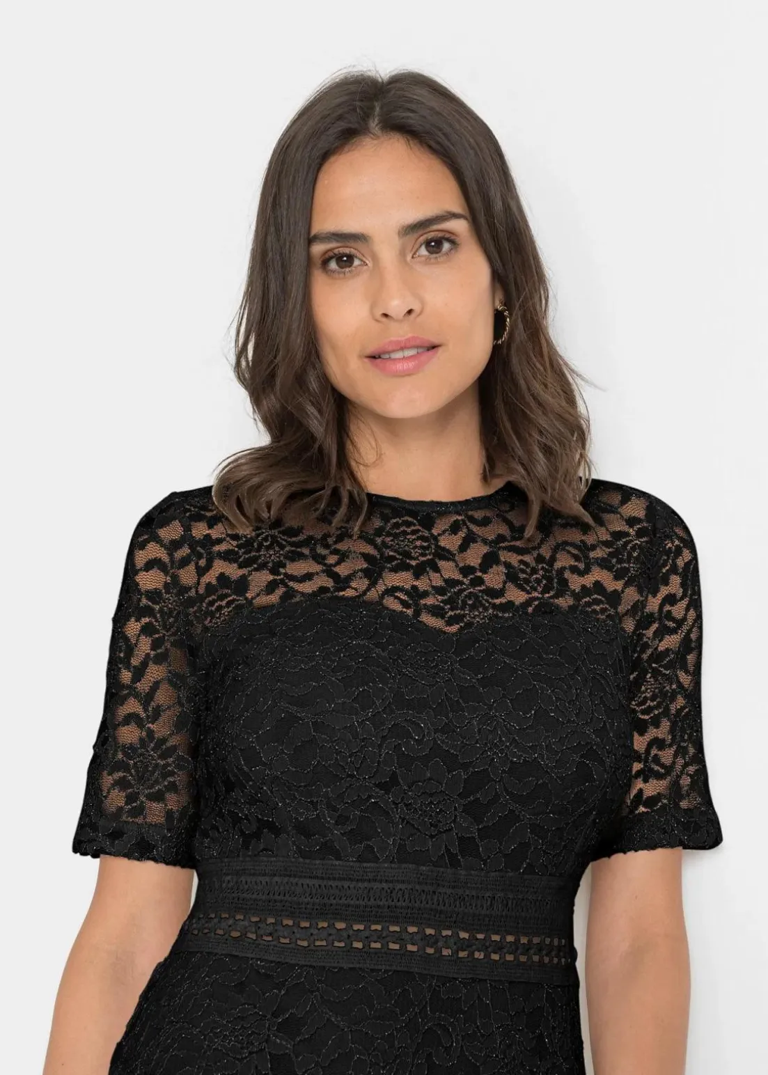 Romantisch und feminin: Midikleid aus Spitze mit Häkeleinsatz in der Taille