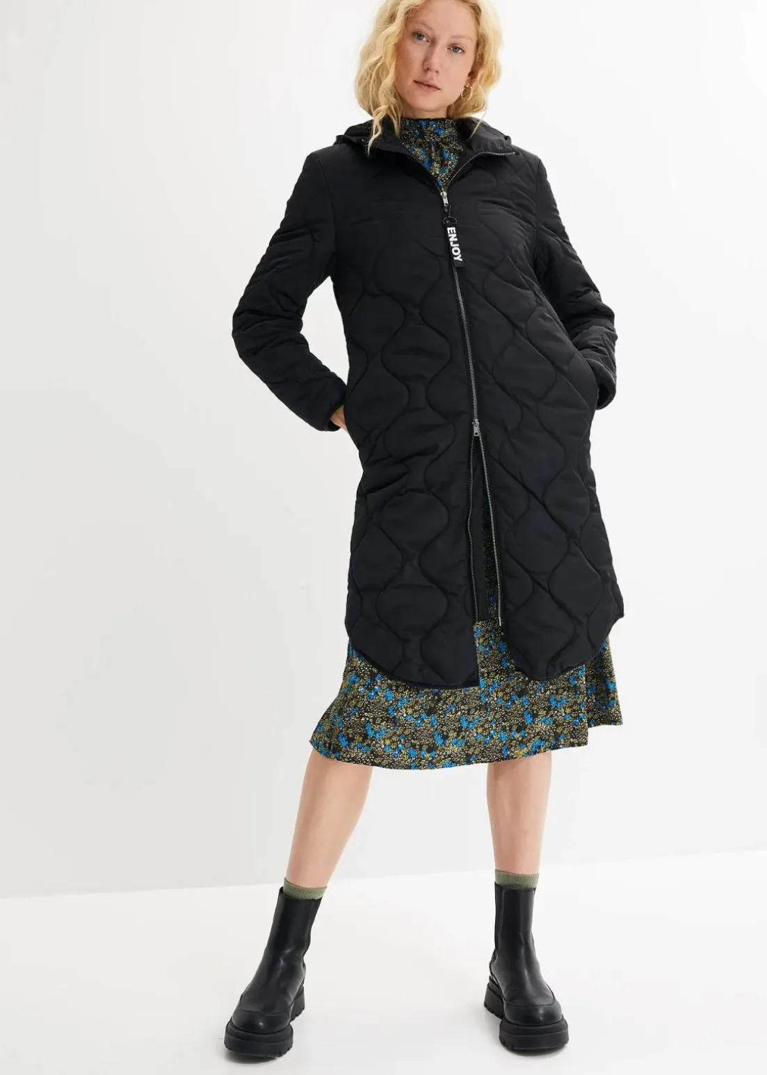 Schöne Steppjacke mit Kapuze und 2 Wege Reißverschluss