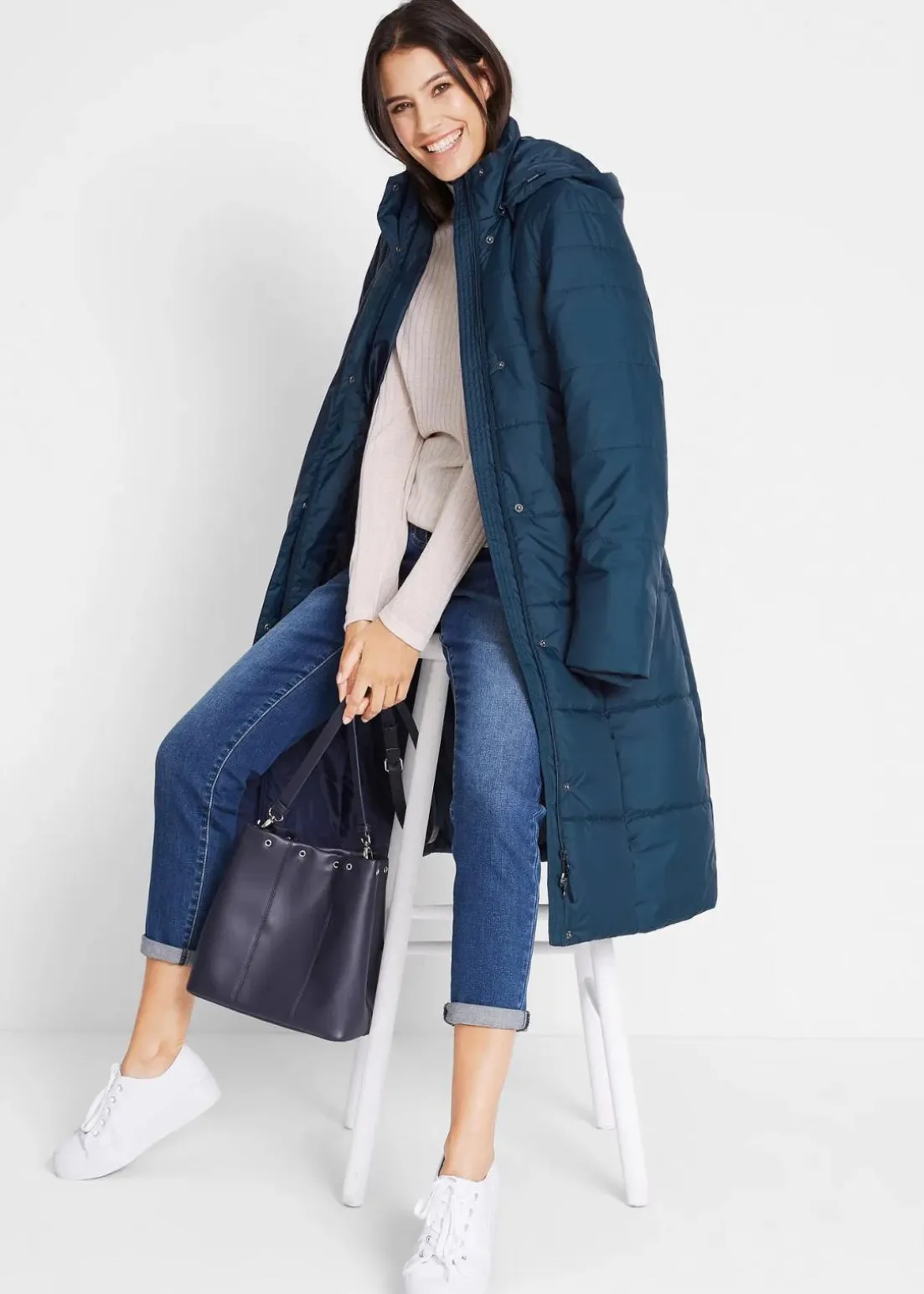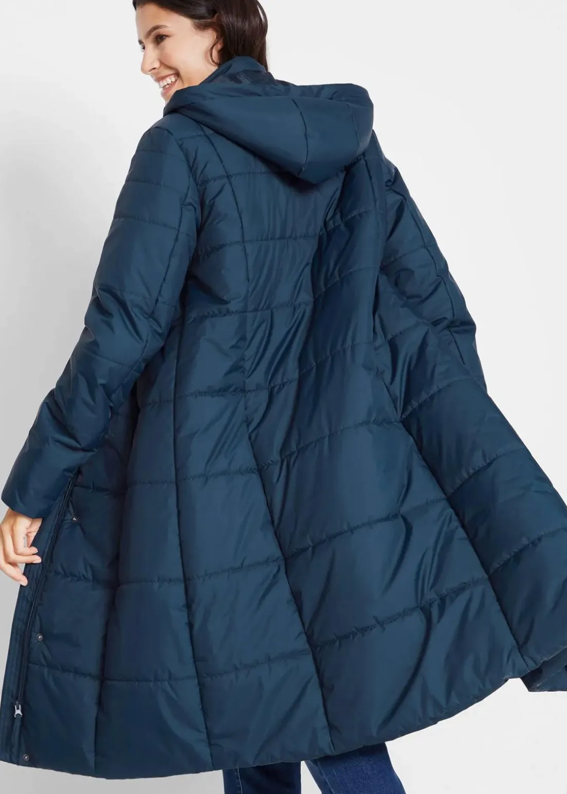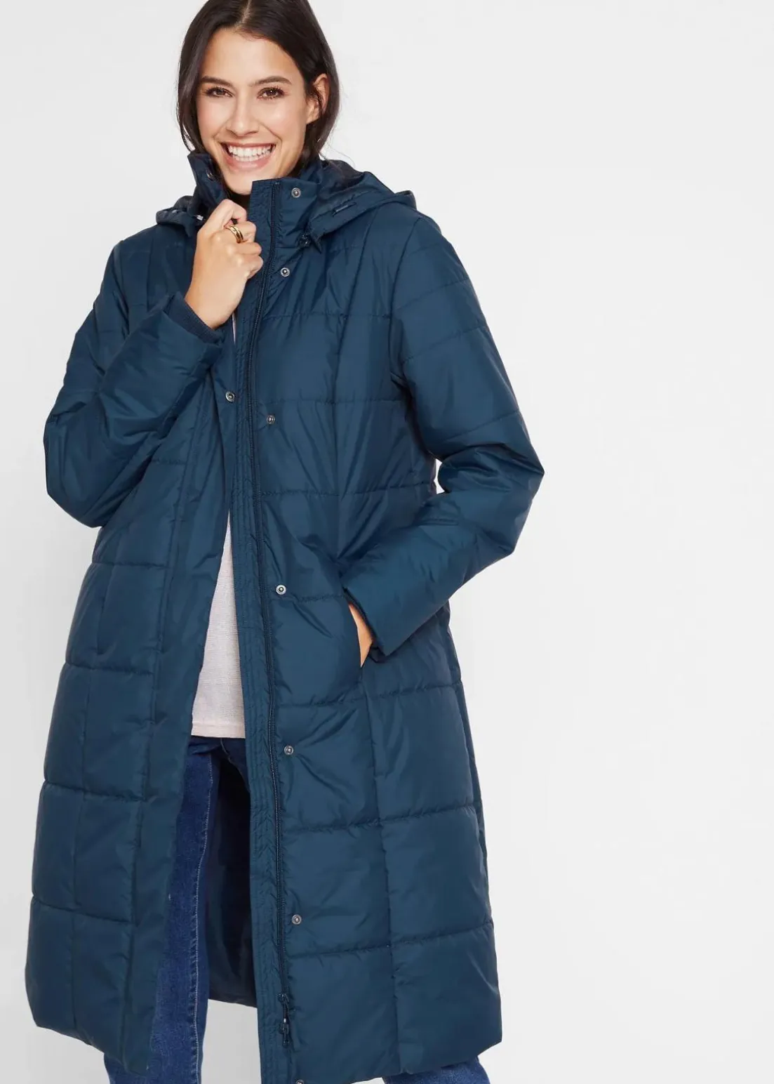 A-linienförmiger Steppmantel mit abnehmbarer Kapuze