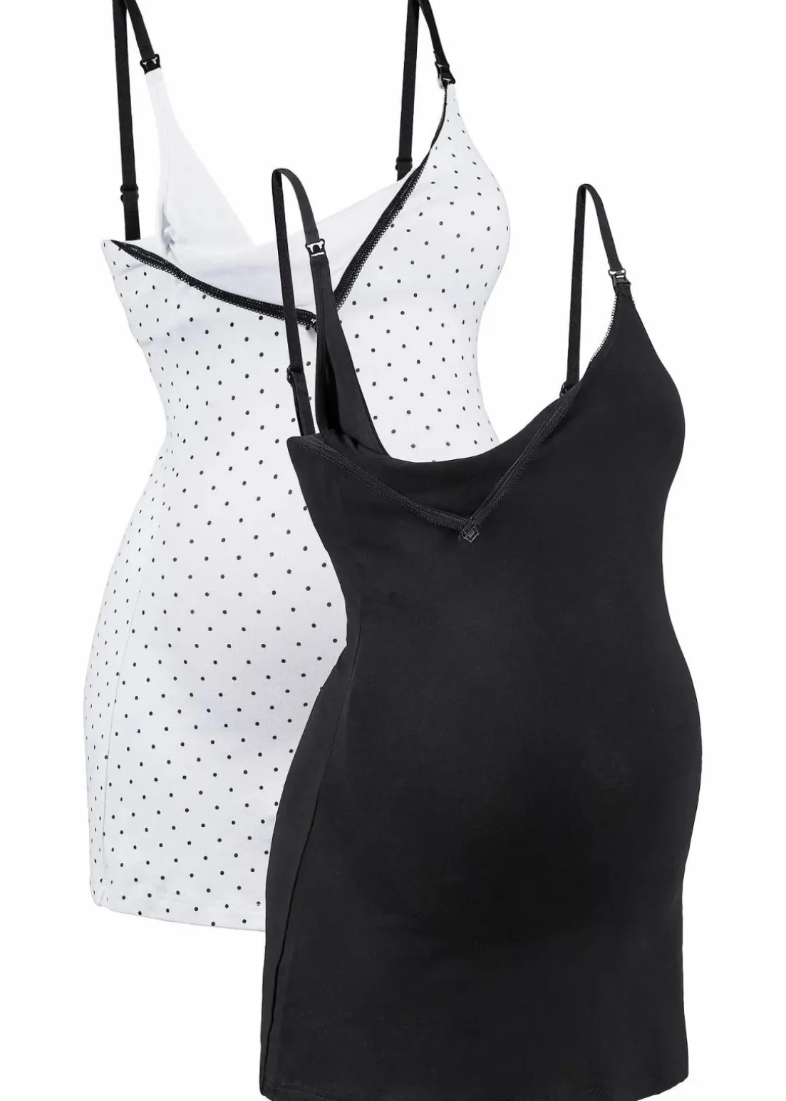 Dieser Doppelpack Tops der Marke Nice Size eignet sich ausgezeichnet für Schwangerschaft und Stillzeit. Das Modell ist aus einem weichen, anschmiegsamen Material gearbeitet, das hohen Komfort und viel Platz für den wachsenden Bauch bietet.