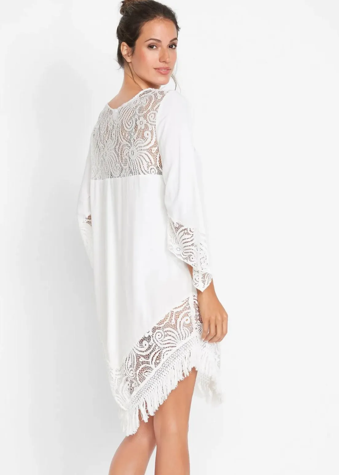 Transparente Strand Spitzentunika mit Fransen