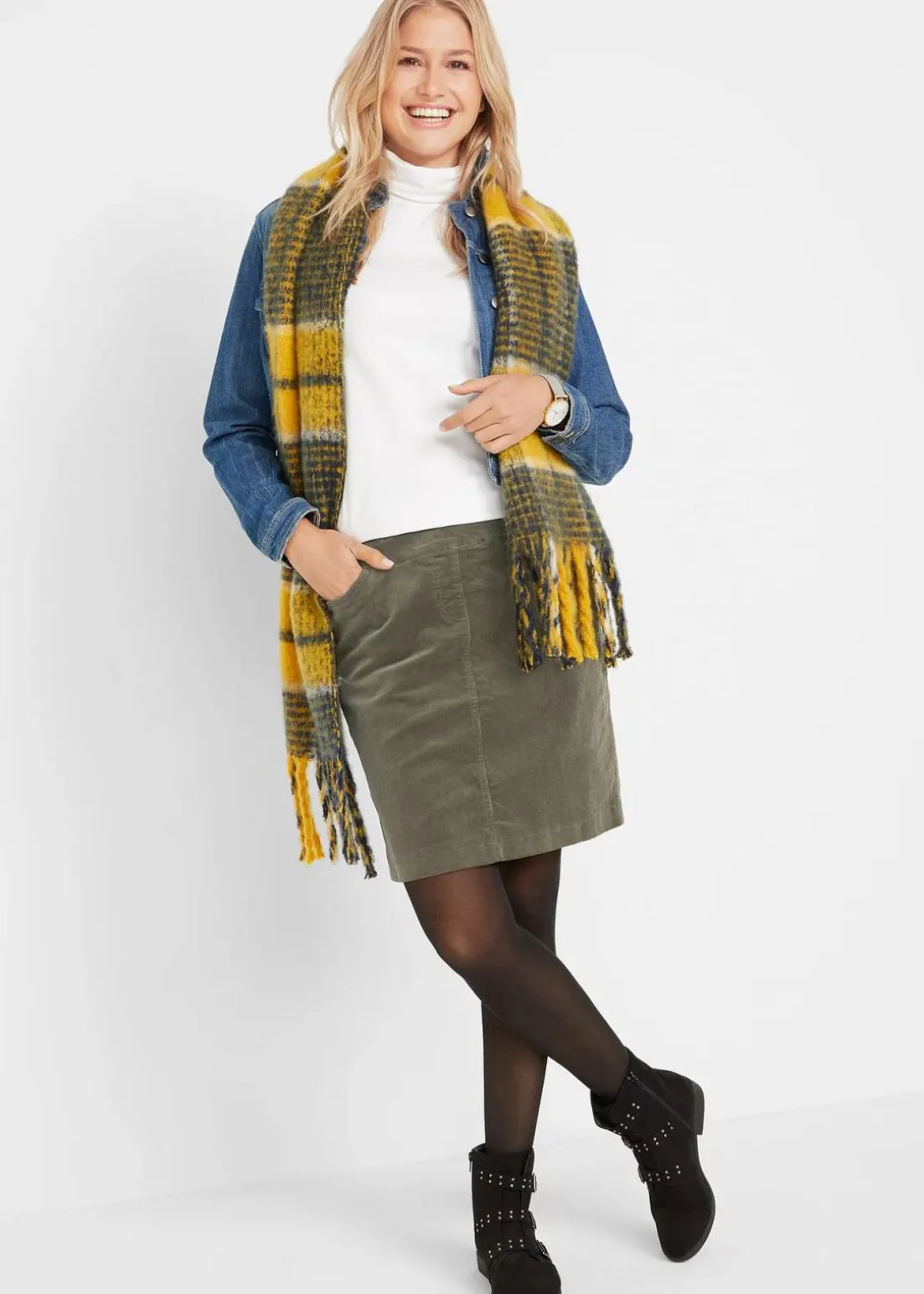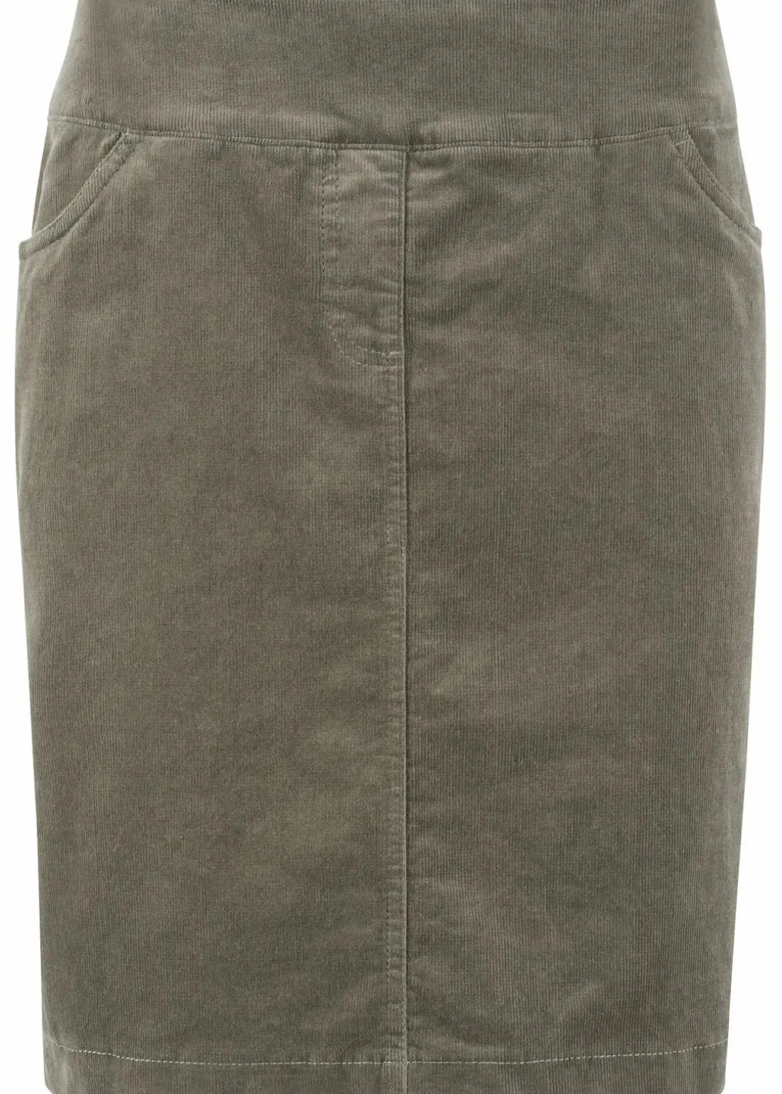 Stretch-Cordrock mit elastischem Bund in knieumspielender Länge. ONLINEBESTELLHINWEIS: Rock kann hinten Stickerei enthalten.