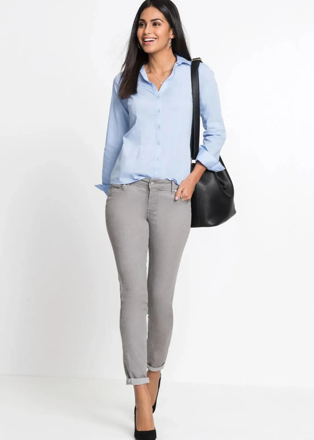 Vielseitig kombinierbare Stretch-Bluse mit langen Ärmeln.