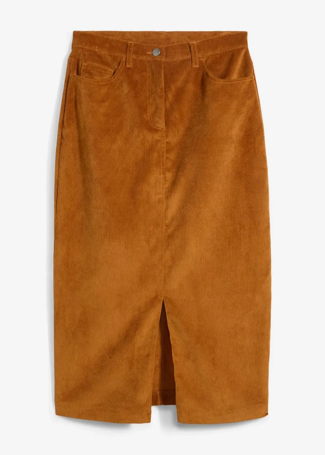 Modischer Cord-Rock mit Schlitz an der Vorderseite und Taschen