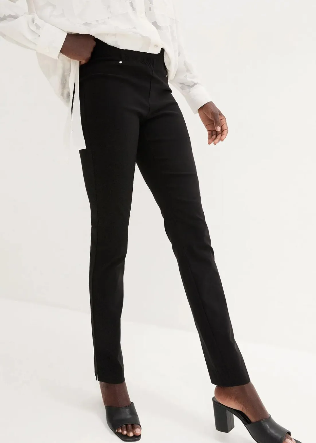 Klassische schmale Schlupf-Stretchhose mit Gürtelschlaufen
