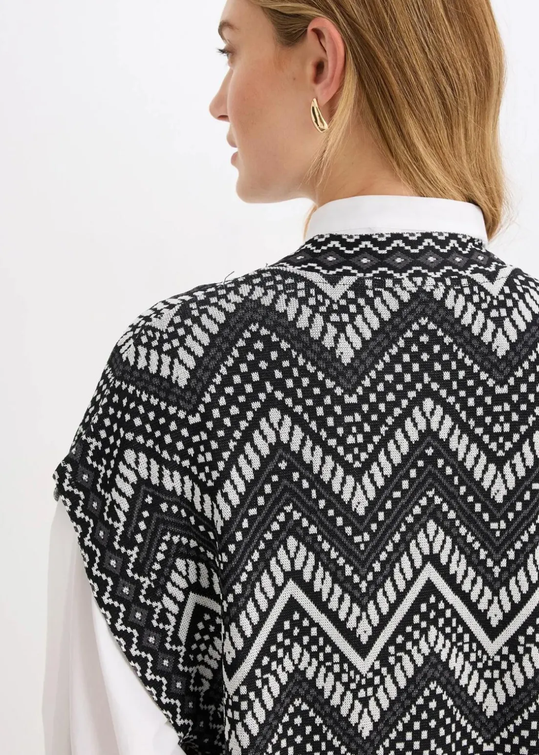 modische Jacquard-Strick-Weste mit überschnittener Schulter und Seitenschlitzen