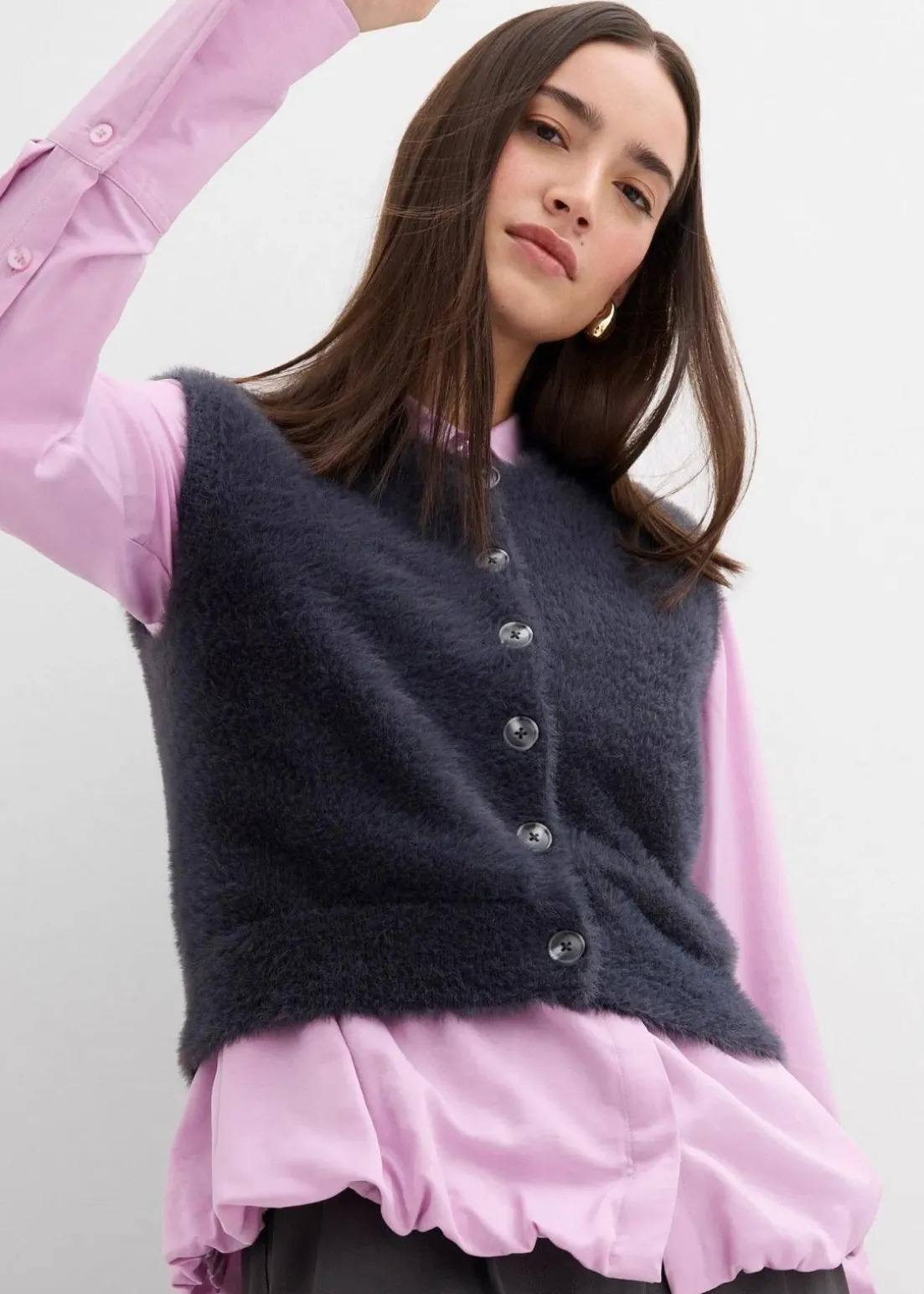 Federgarn-Weste mit Knopfleiste vorne und weicher Haptik