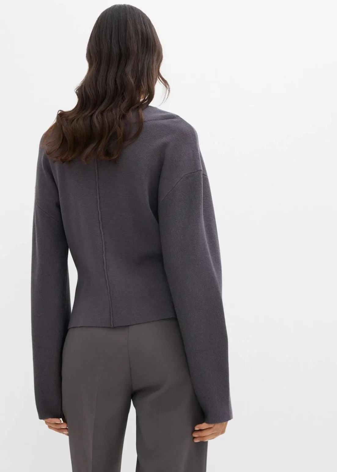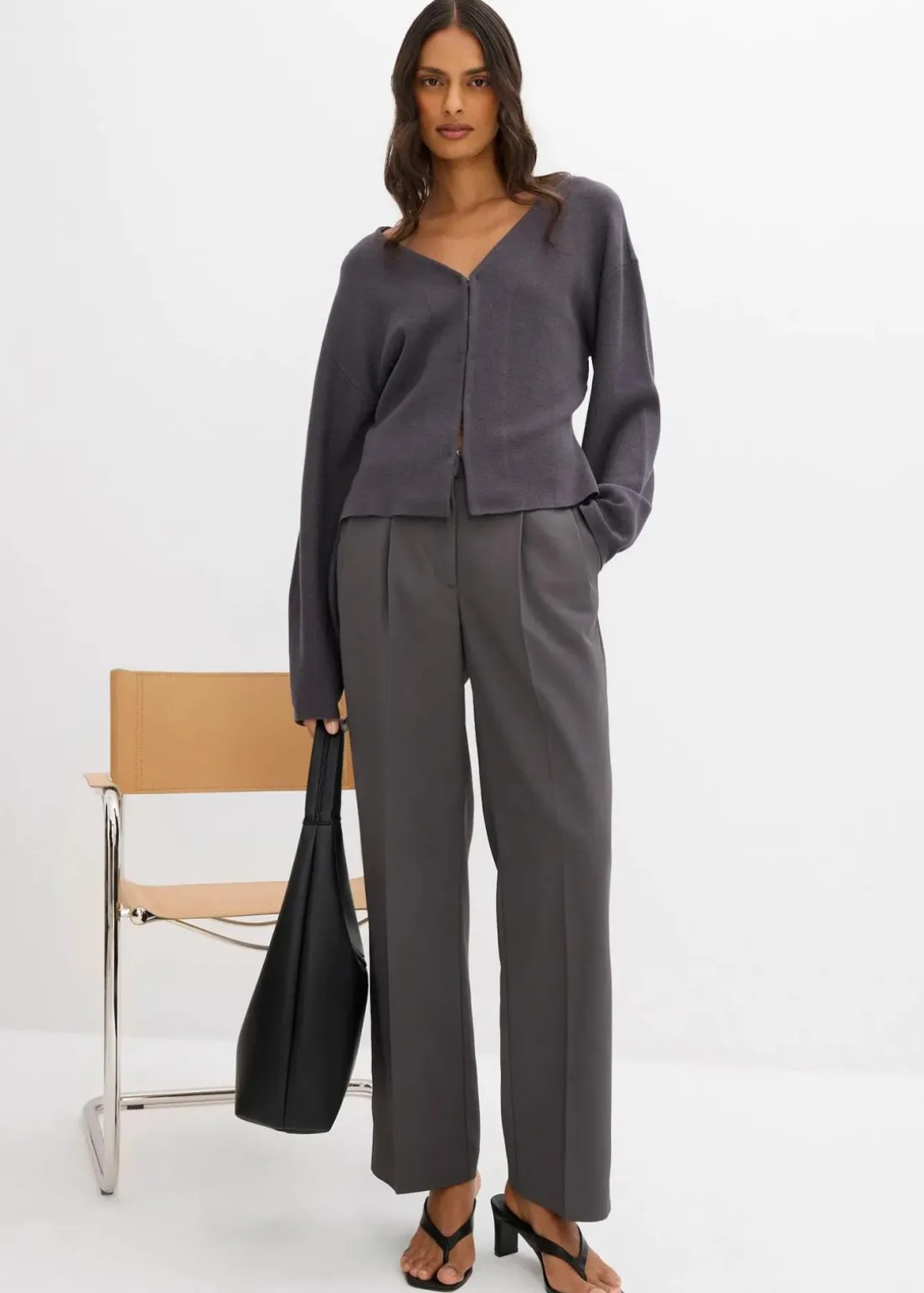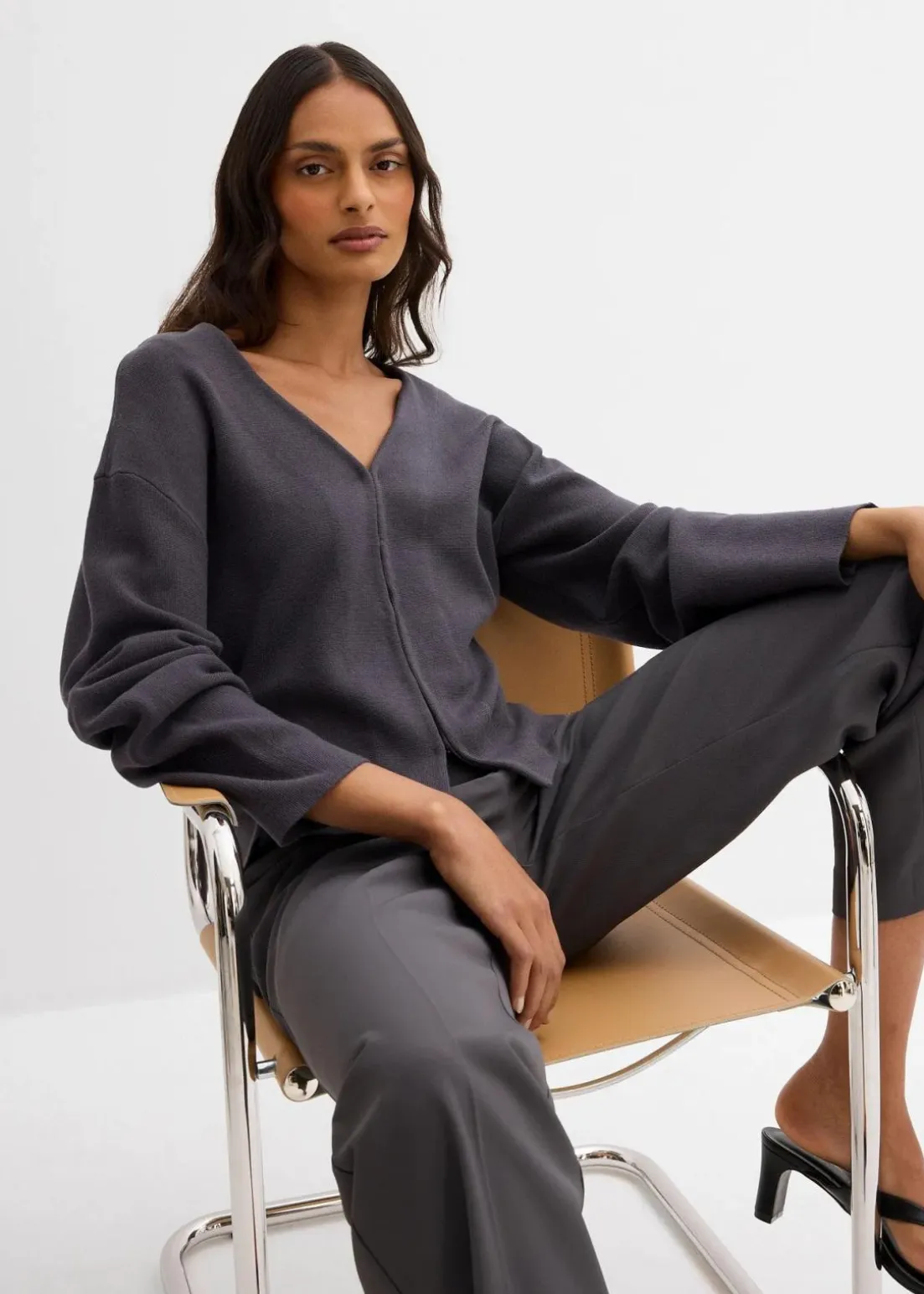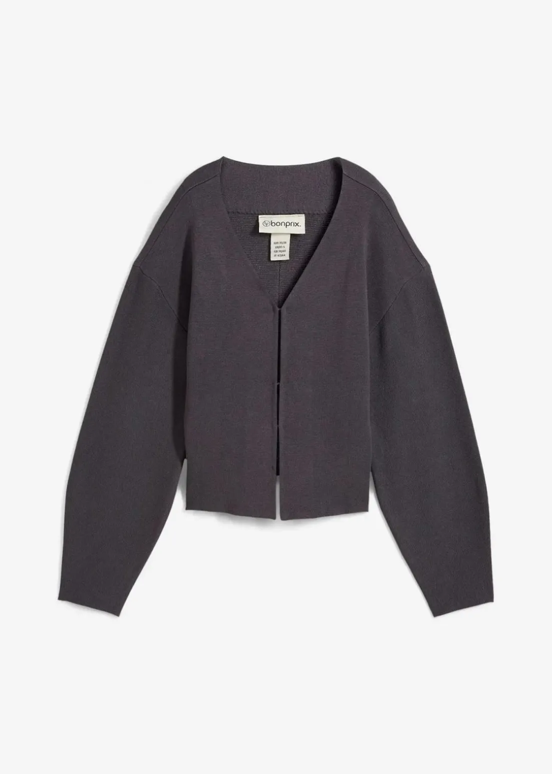 Strickjacke mit voluminösen Ärmeln, V-Ausschnitt und Hakenverschluss vorne