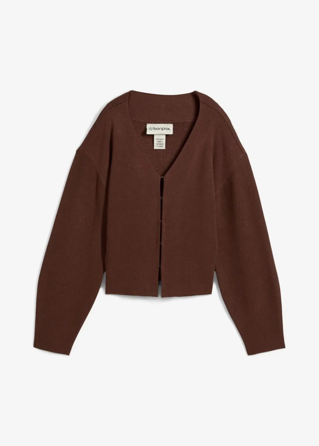 Strickjacke mit voluminösen Ärmeln, V-Ausschnitt und Hakenverschluss vorne