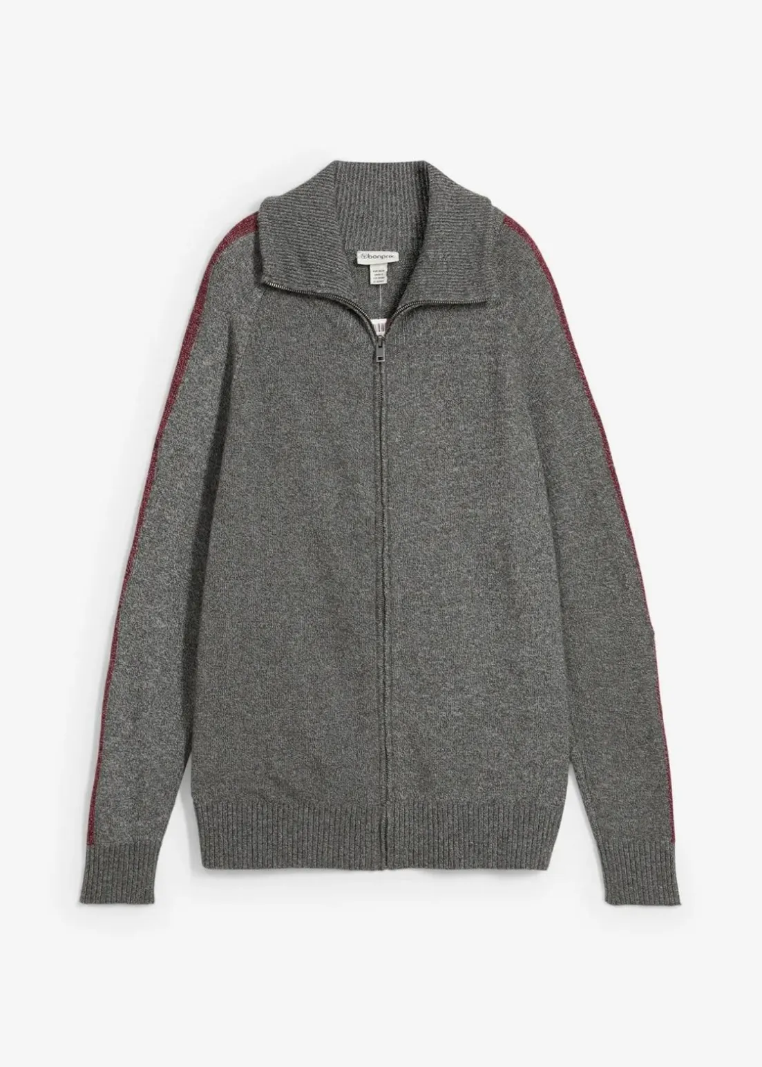 Lässige Strickjacke aus weichem Woll-Mix mit Kontraststreifen