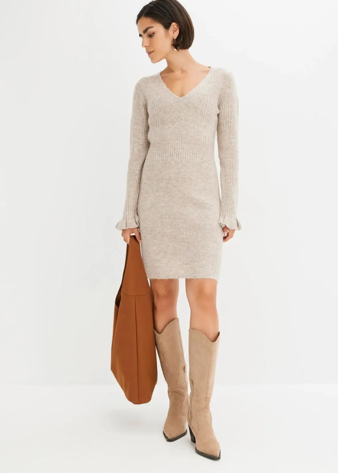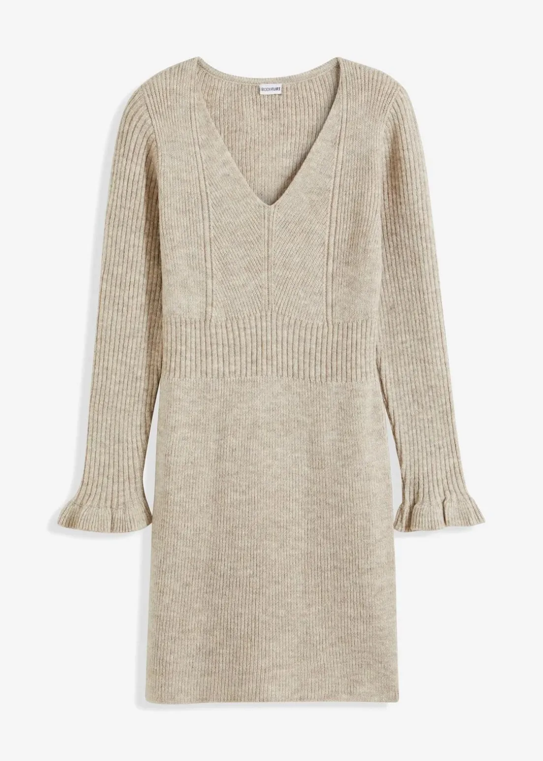 feminines Strickkleid mit Volants am Ärmelsaum