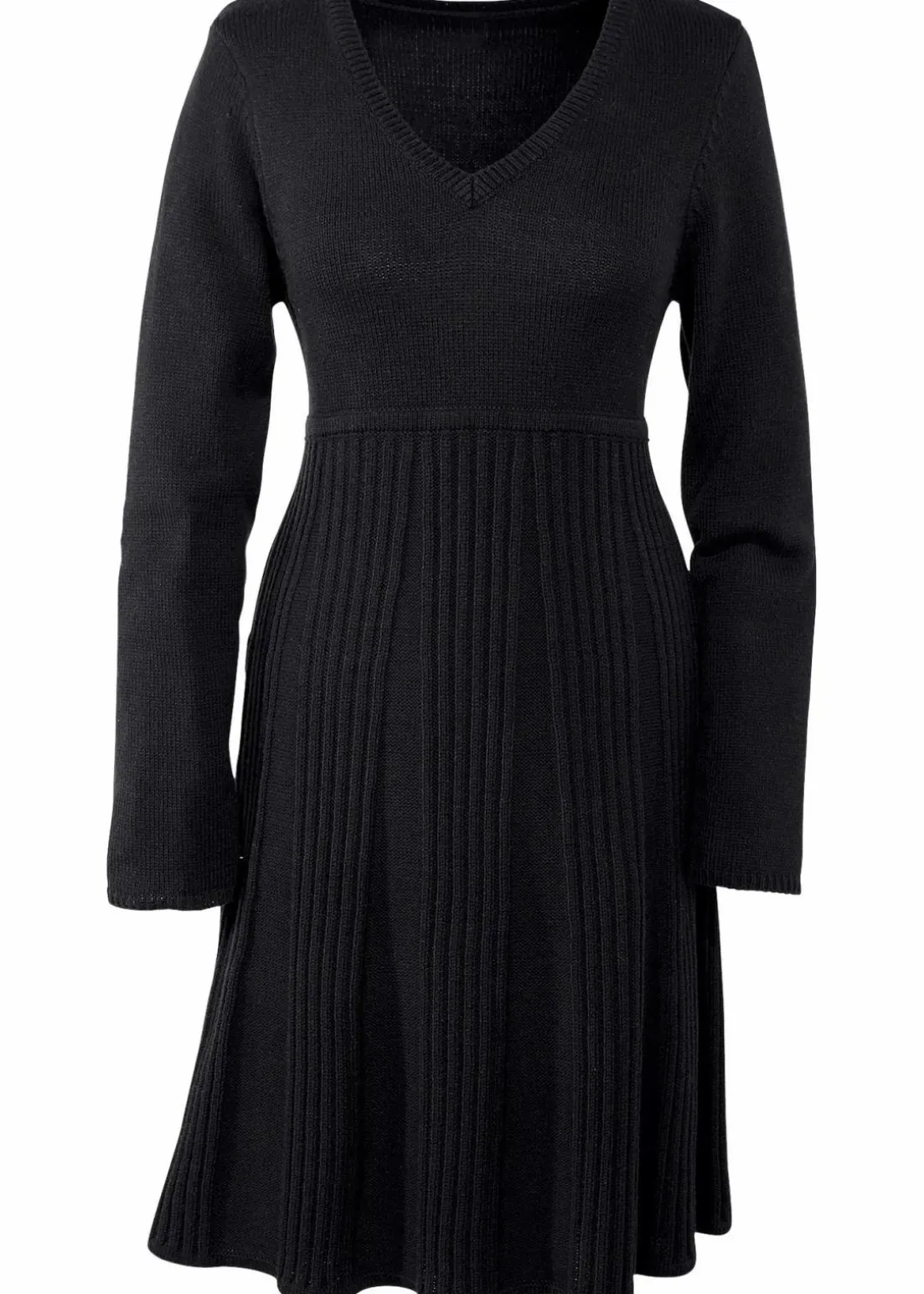 Dieses feminin geschnittene Strickkleid von BODYFLIRT hat das Potenzial, Ihr Lieblingskleidungsstück zu werden. Mit dem V-Ausschnitt, der ausgestellten Form und dem schönen Rippen-Mix ist das Kleid ein dezenter BlickfangOb für die Übergangsjahreszeiten, für kühle Sommerabende oder im Winter mit schicken Strumpfhosen und Stiefeln kombiniert: Dieses Strickkleid ist ein Muss für den Kleiderschrank.