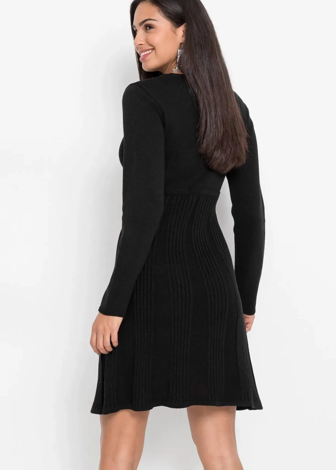 Figurbetont geschnittenes Strickkleid mit attraktivem Rippen-Mix