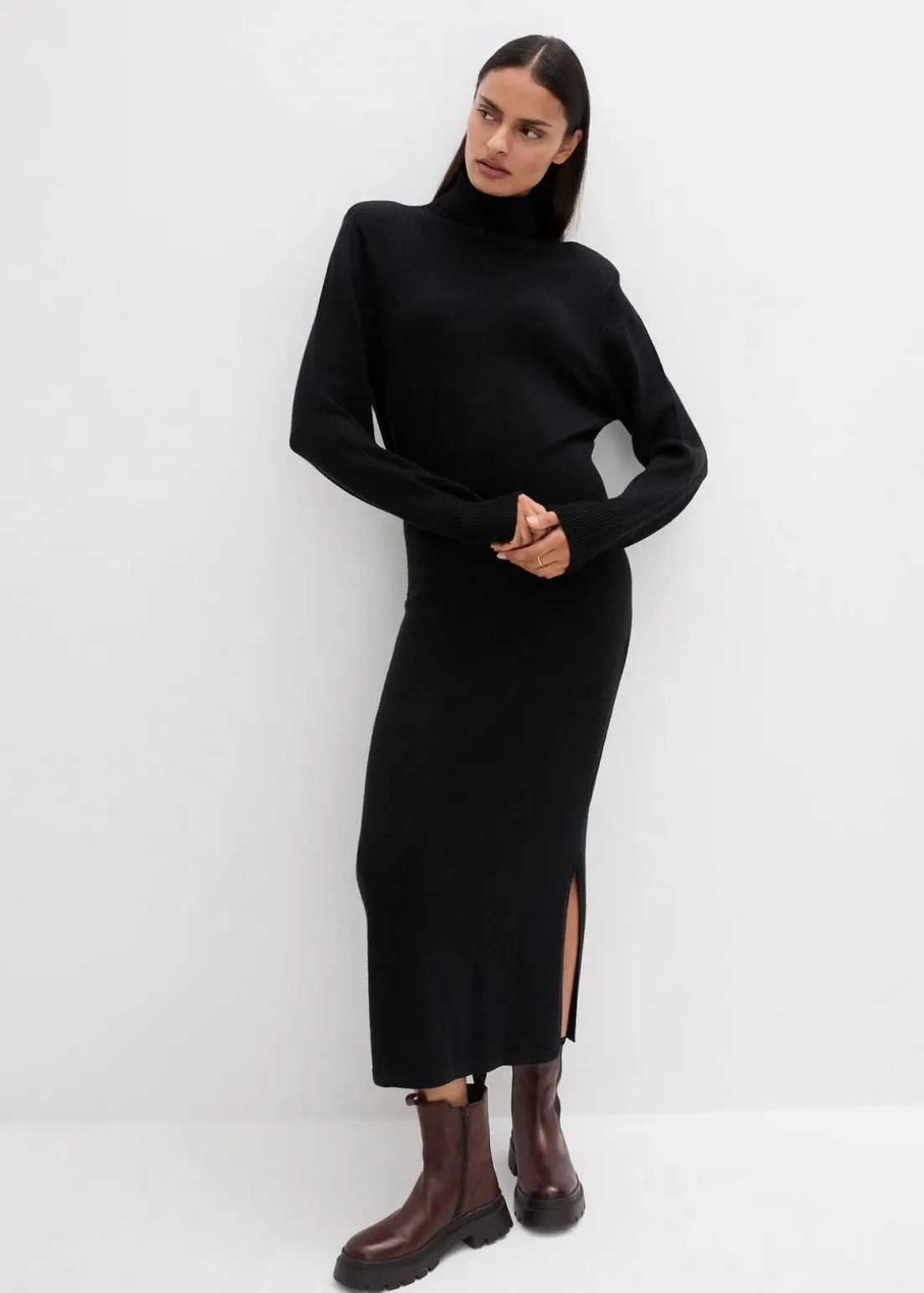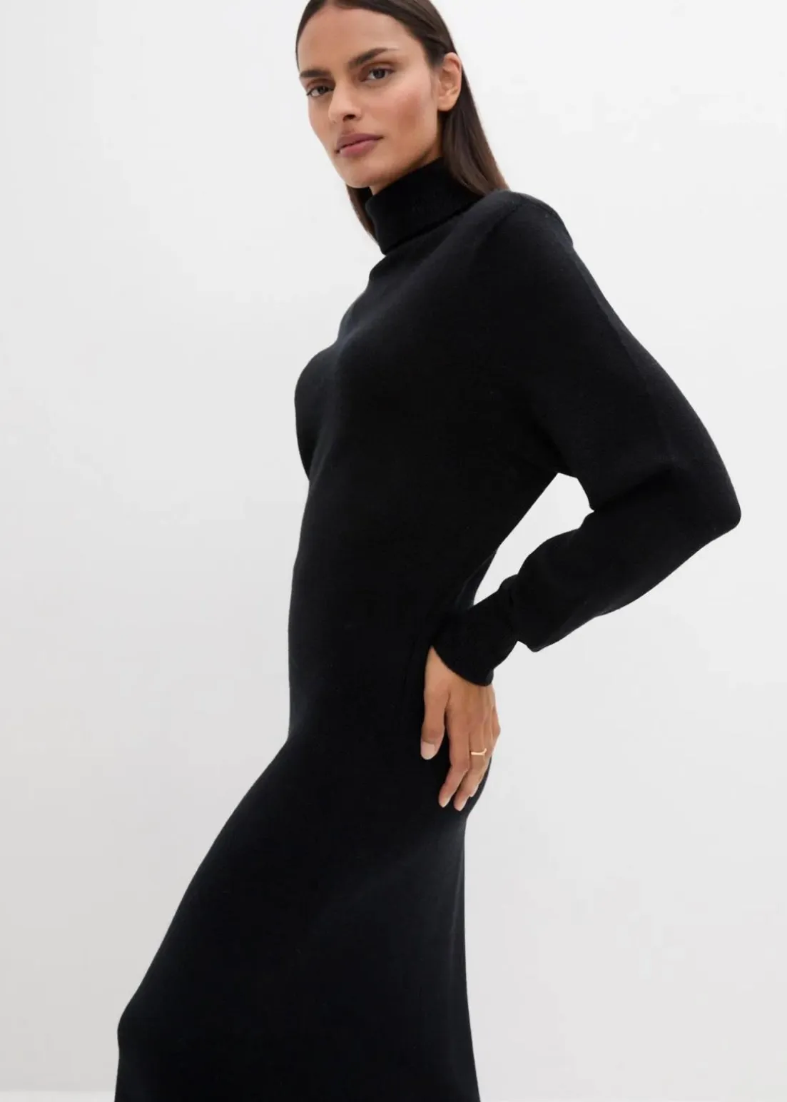 tailliertes Rollkragenkleid aus reiner Merinowolle in Premium Qualität
