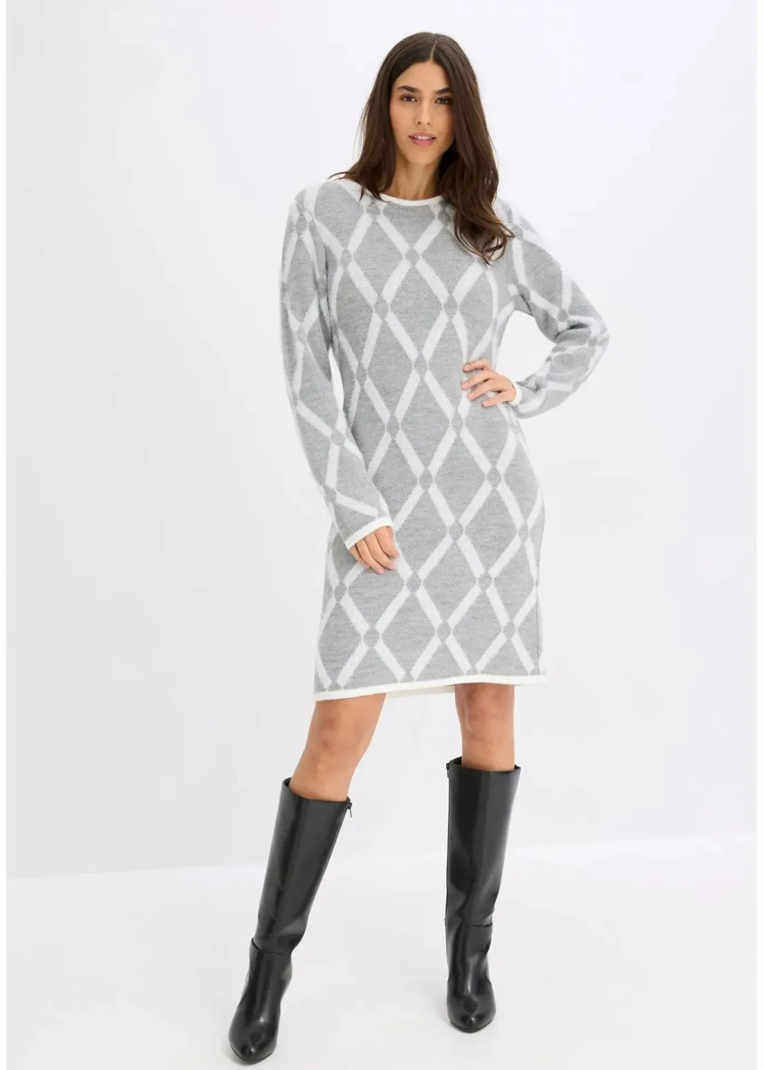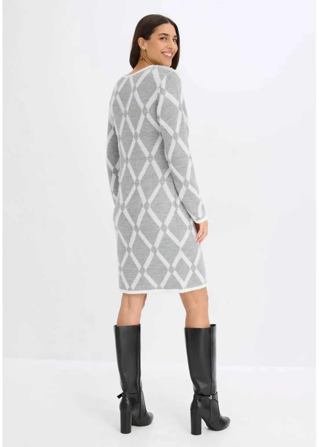 schickes Strickkleid mit Rautenmuster aus Federgarn