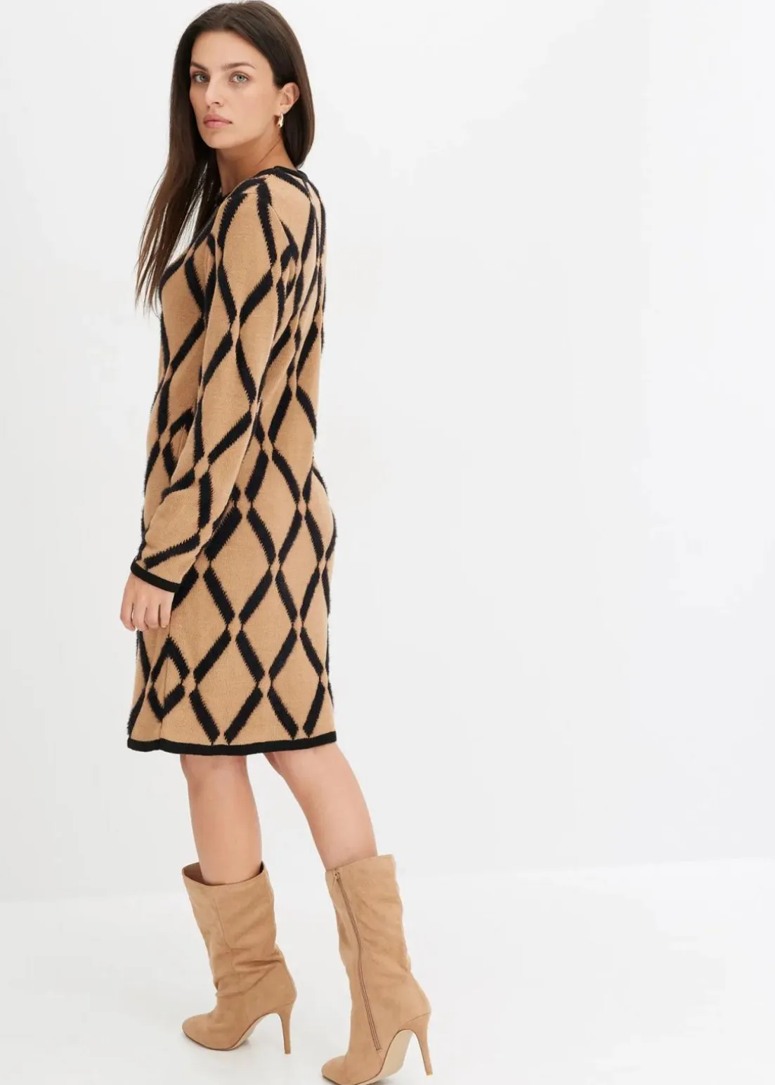 schickes Strickkleid mit Rautenmuster aus Federgarn