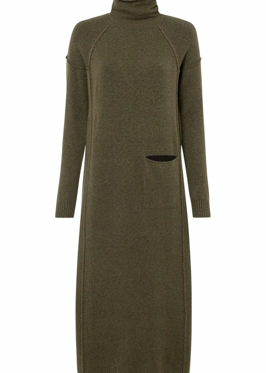 Langes Strickkleid mit Rollkragen und seitlicher Tasche