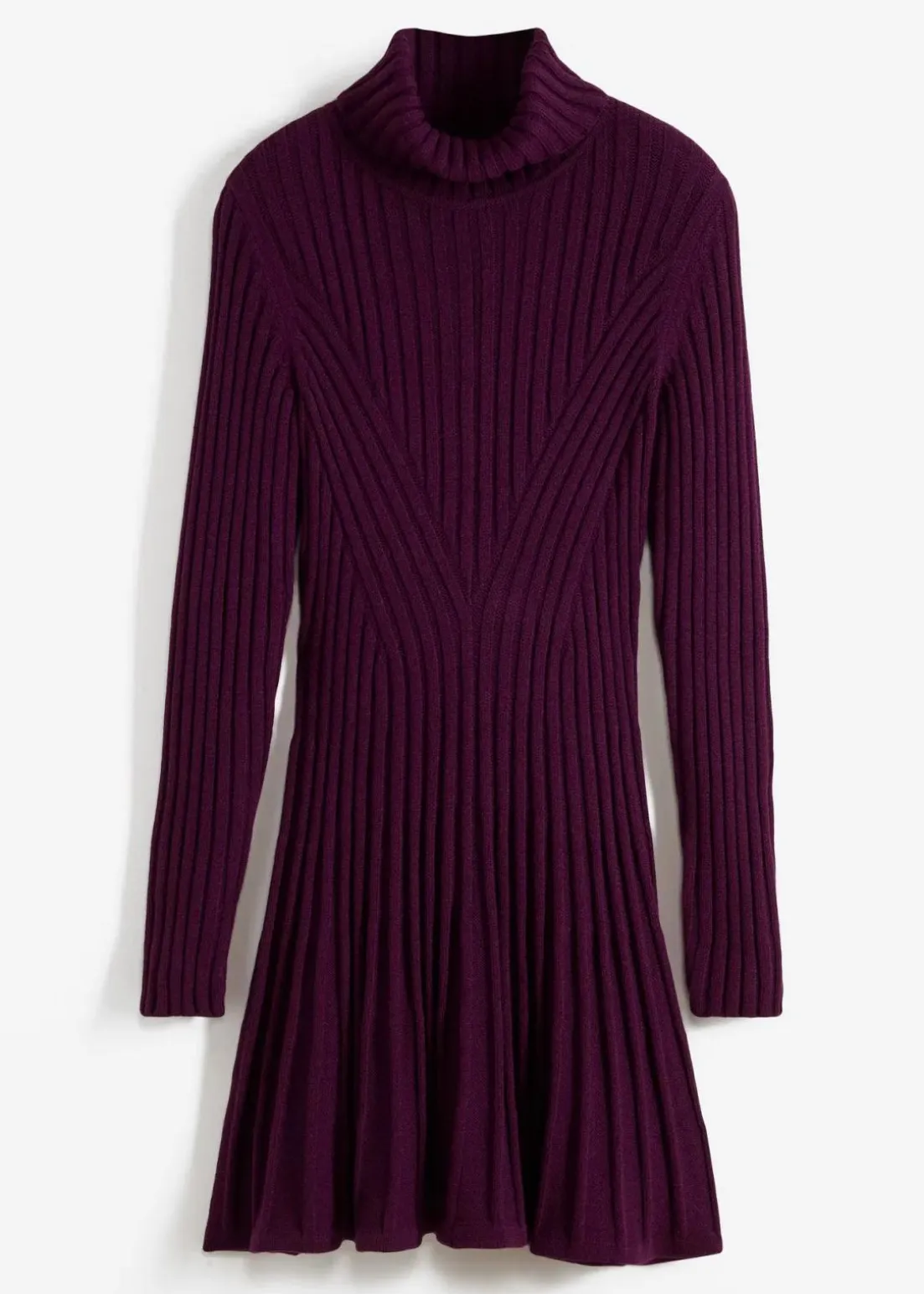 Strickkleid in Rippe und Plissee-Optik im Rockteil