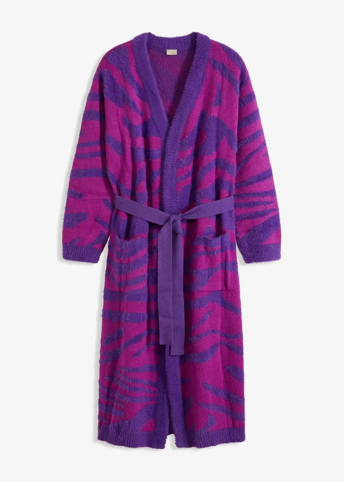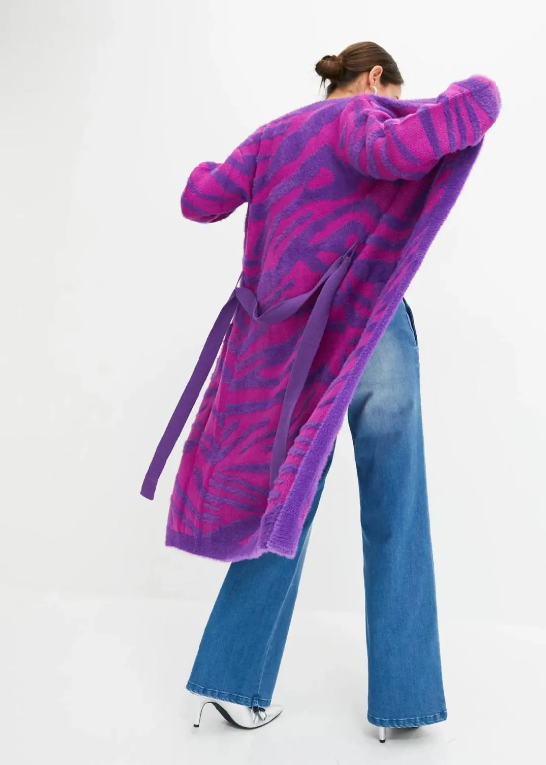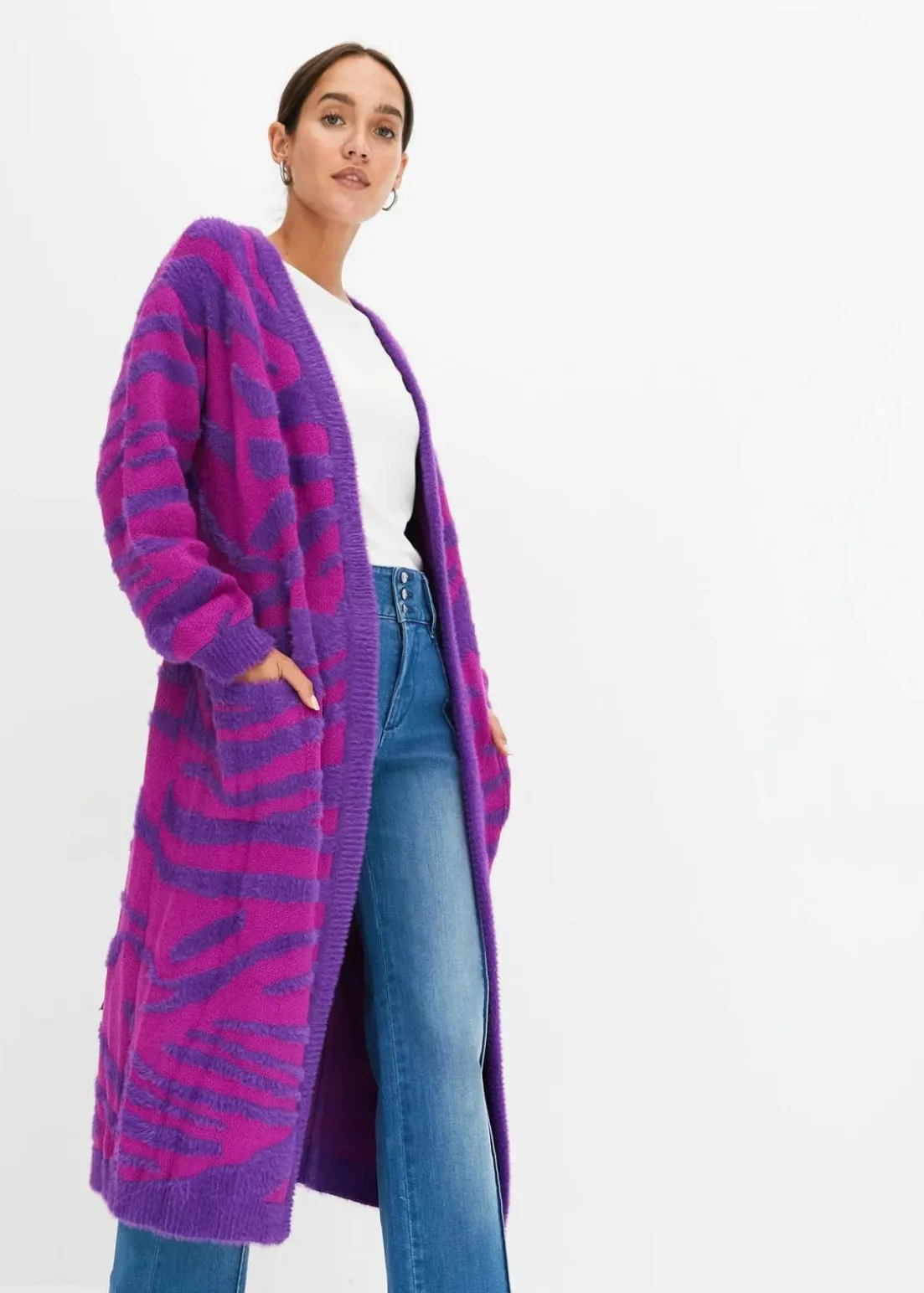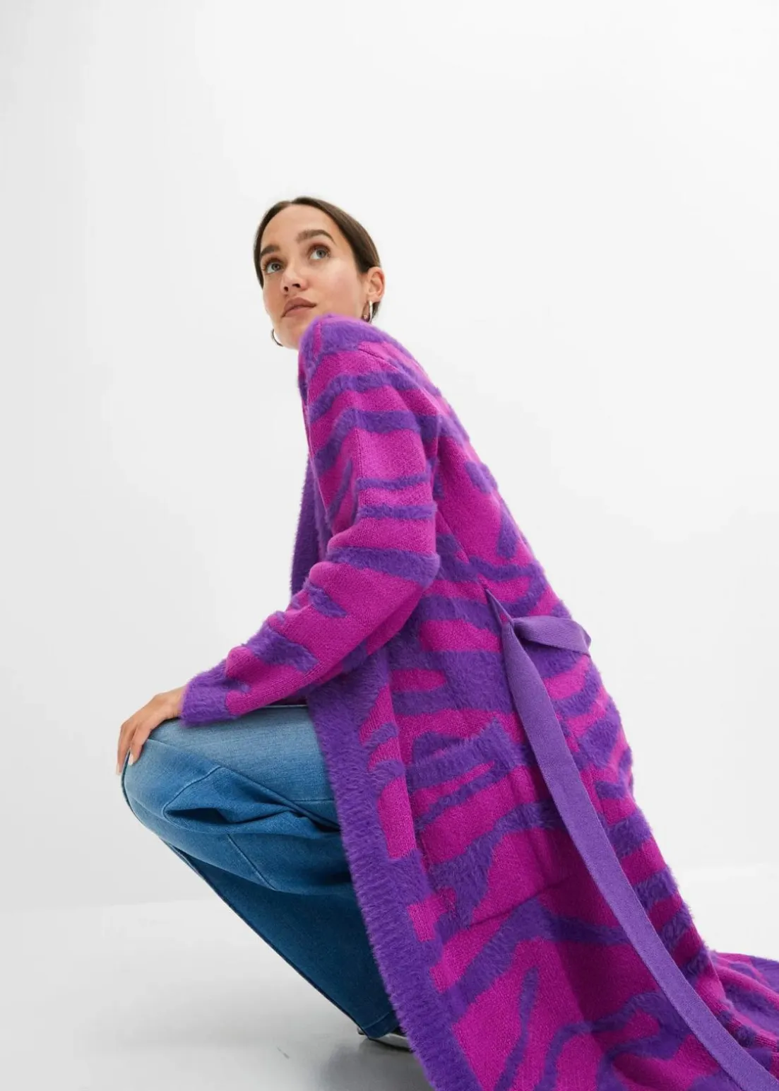 Langer Strickmantel mit modernem Druck