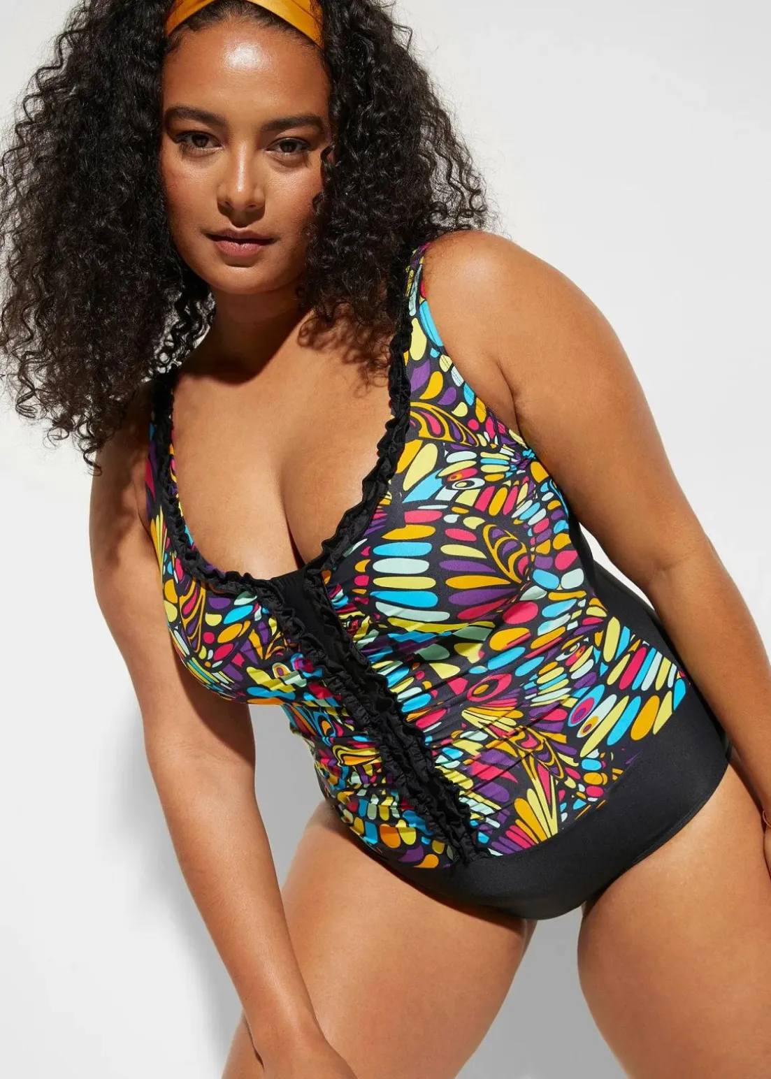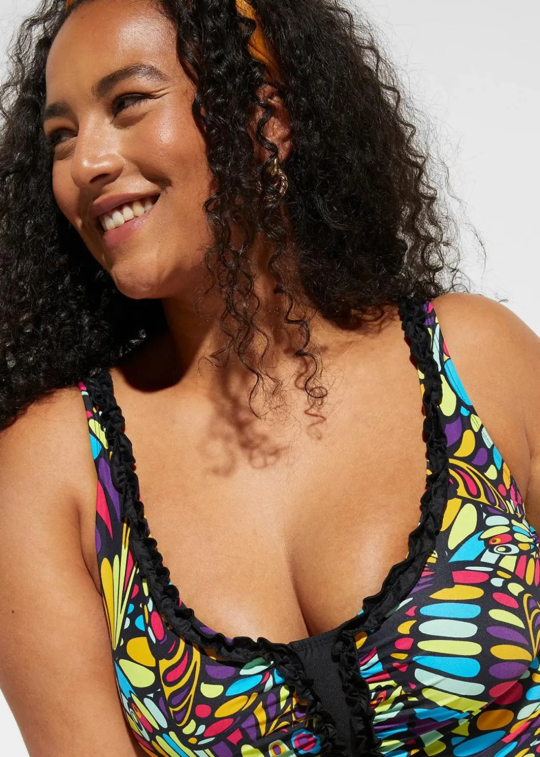 Mit Brustfutter, Unterbrustgummi und integrierten Softcups.
