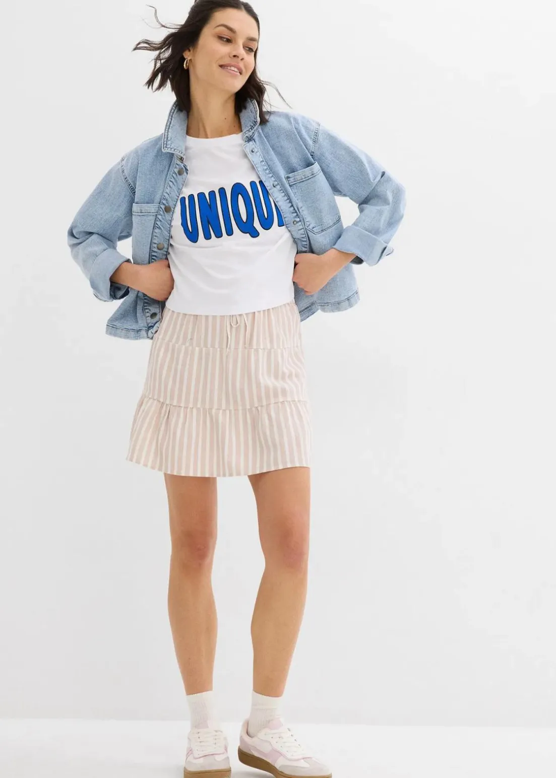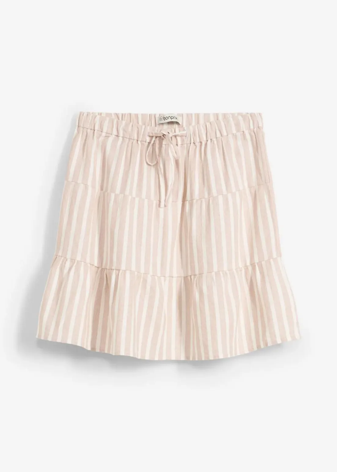Kurzer Stufenrock aus Leinen Mix mit Bindedetail