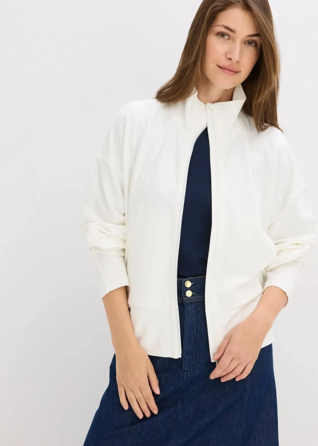 Sweatjacke mit Reißverschluss, Stehkragen und schrägen Leistentaschen vorne