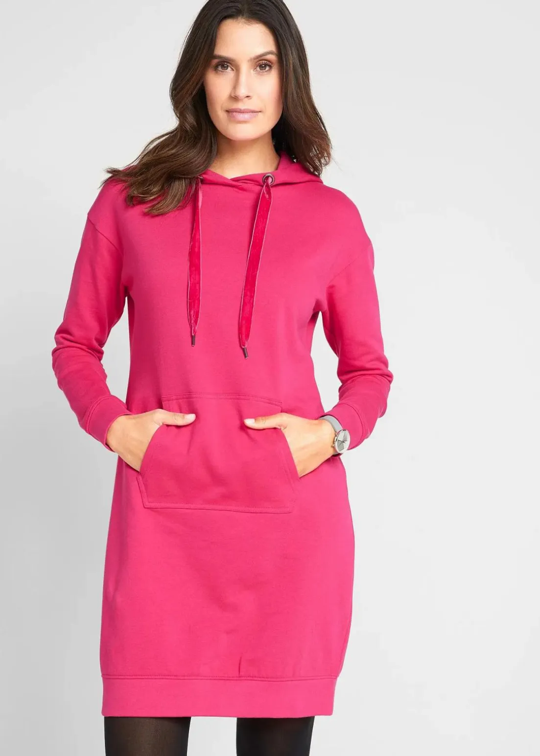 Lässiges Sweatkleid mit Kapuze und Samtbändern