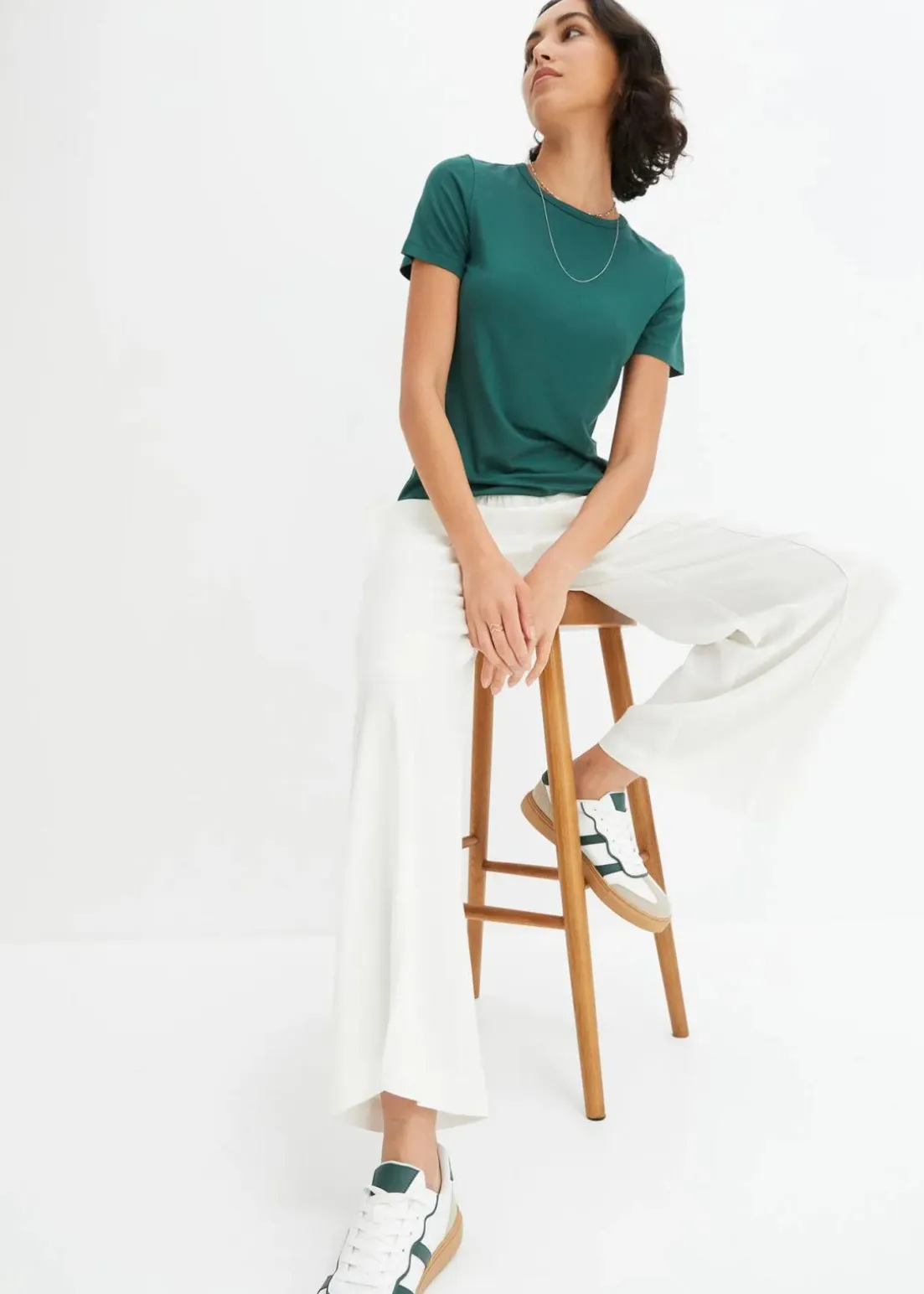 T-Shirt mit Rundhalsausschnitt aus fließendem Material