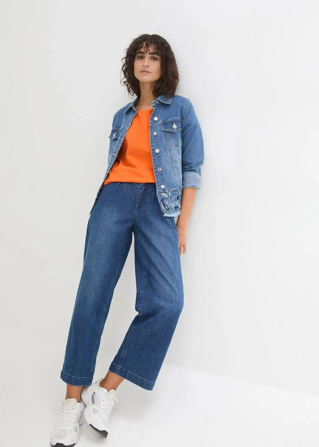 Figurgünstiges Baumwoll Flammgarn T-Shirt mit dekorativer Brusttasche