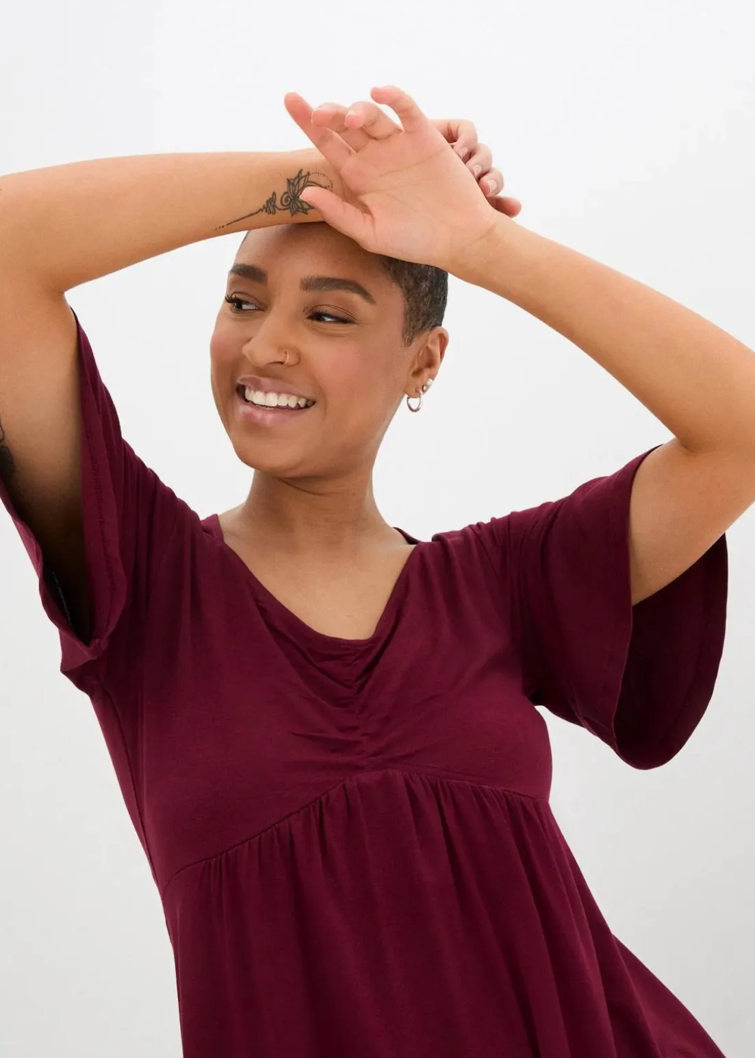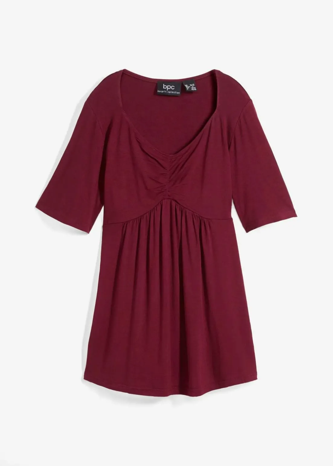 Lang geschnittenes T-Shirt mit geraffter Teilungsnaht unter der Brust in nachhaltiger Viskose