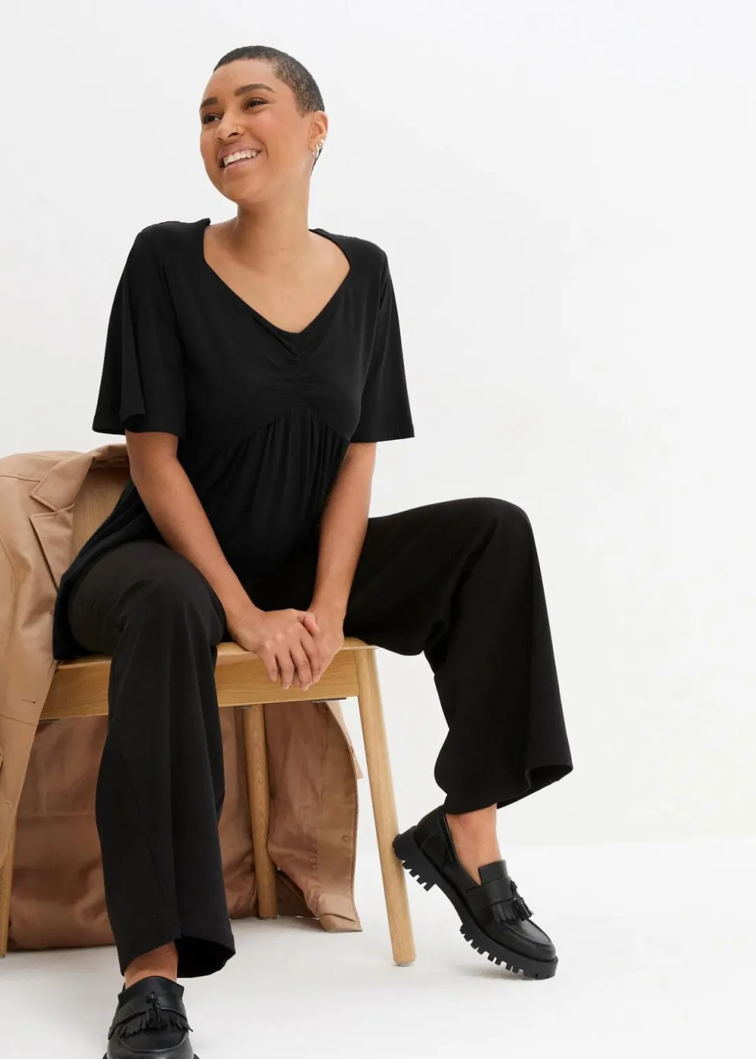 Lang geschnittenes T-Shirt mit geraffter Teilungsnaht unter der Brust in nachhaltiger Viskose