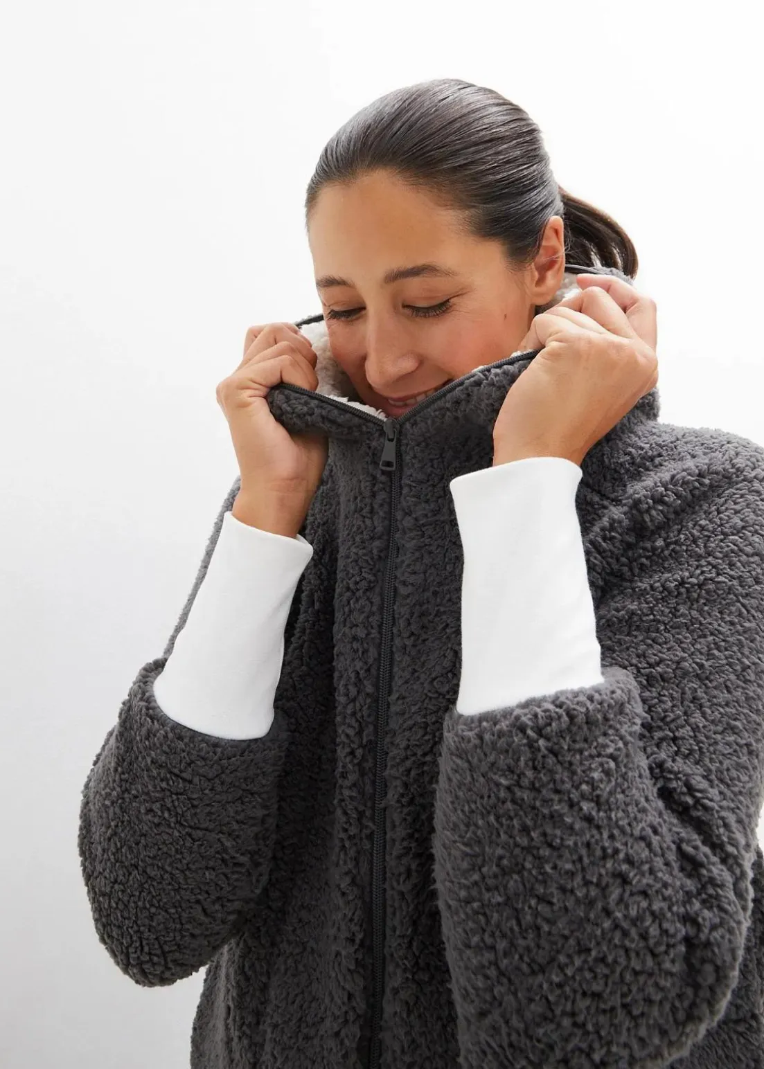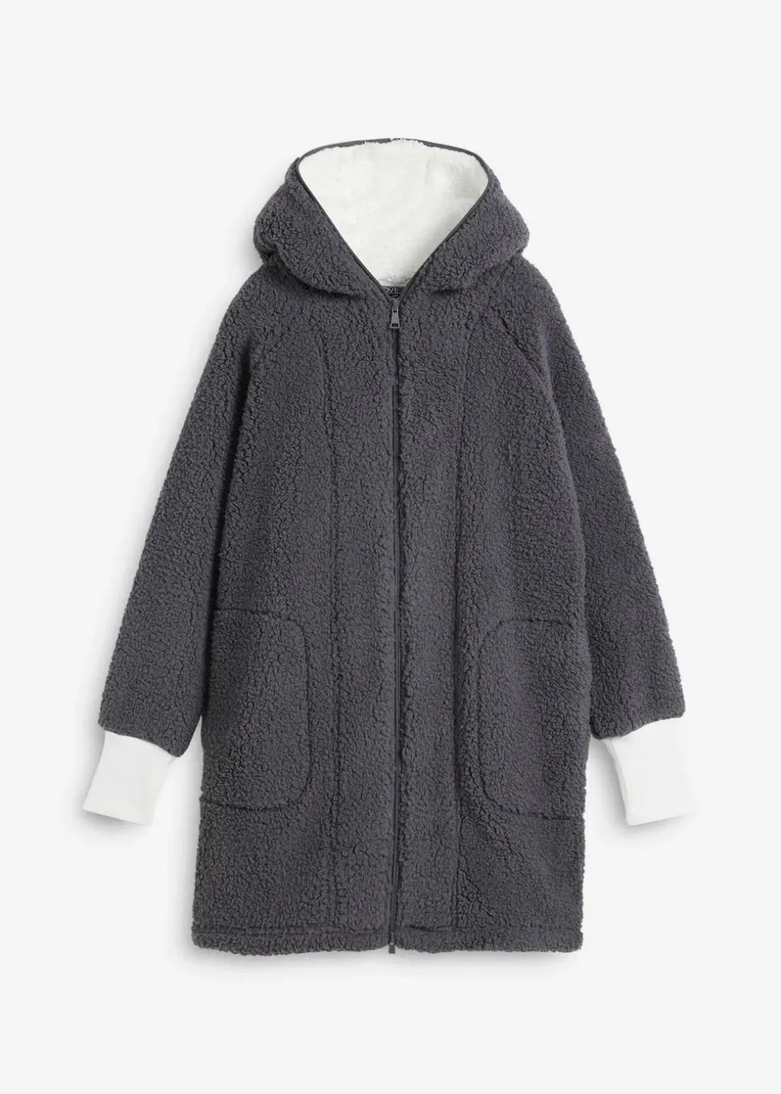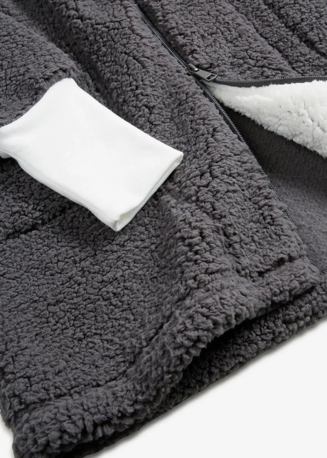 Oversized Teddy-Fleecemantel mit Taschen und 2-Wege-Reißverschluss, der inklusive der Kapuze verschließbar ist