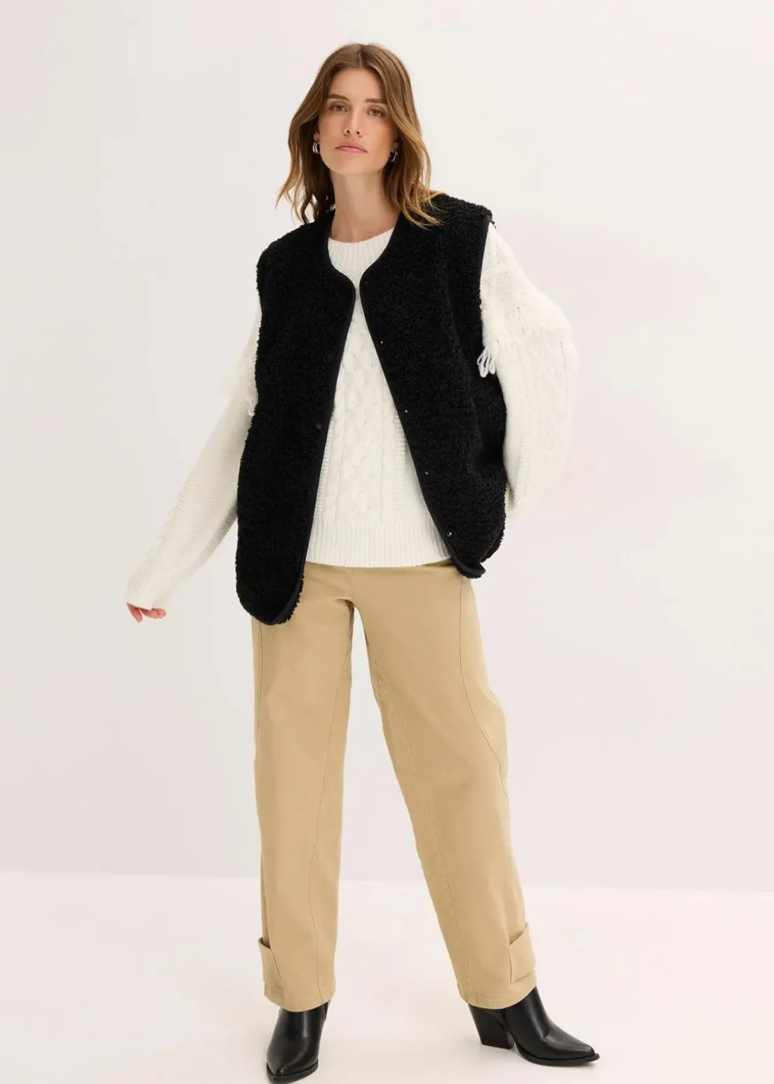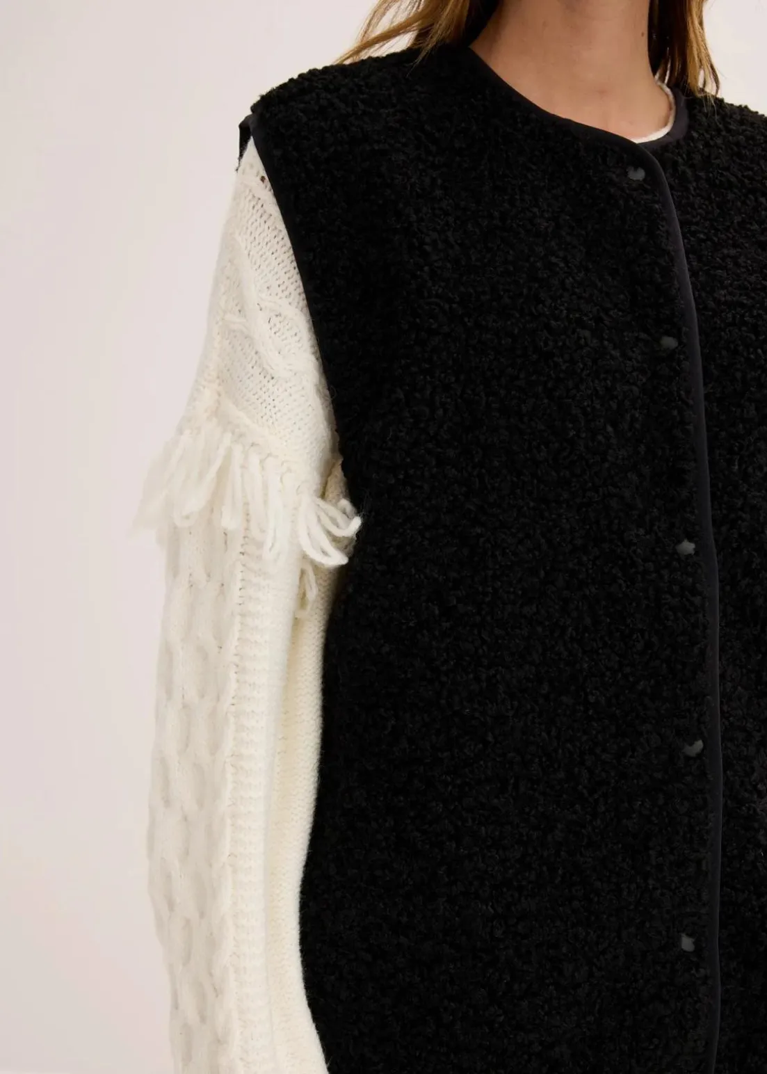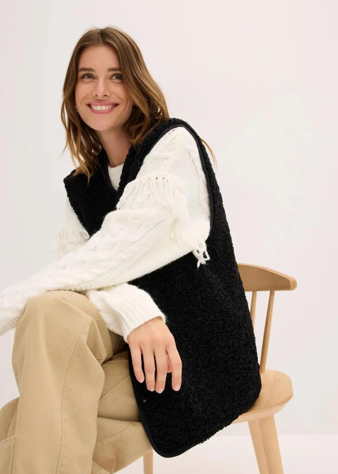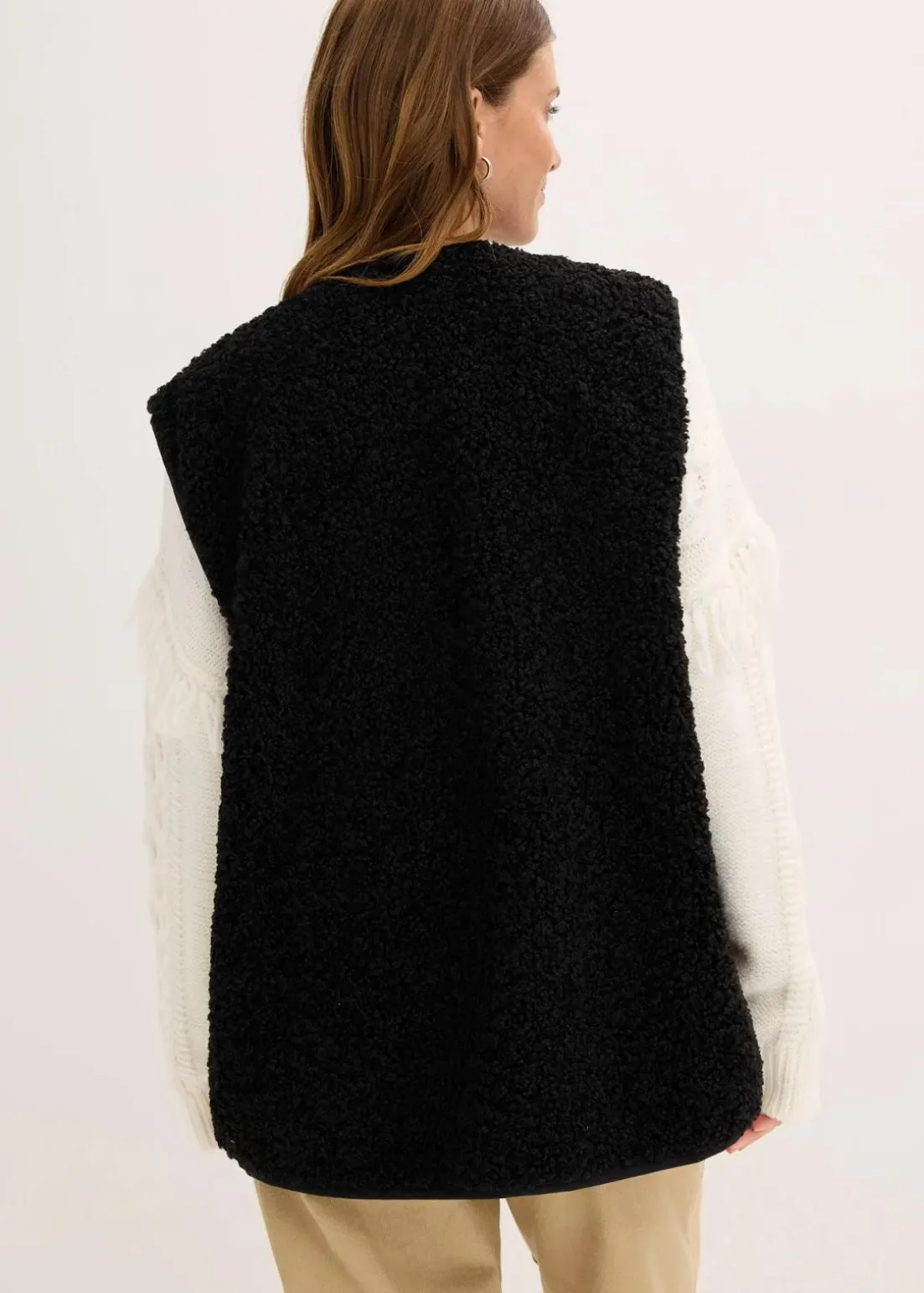 Weit geschnittene Fleece-Weste aus Teddyfleece mit seitlichen Eingriffstaschen.