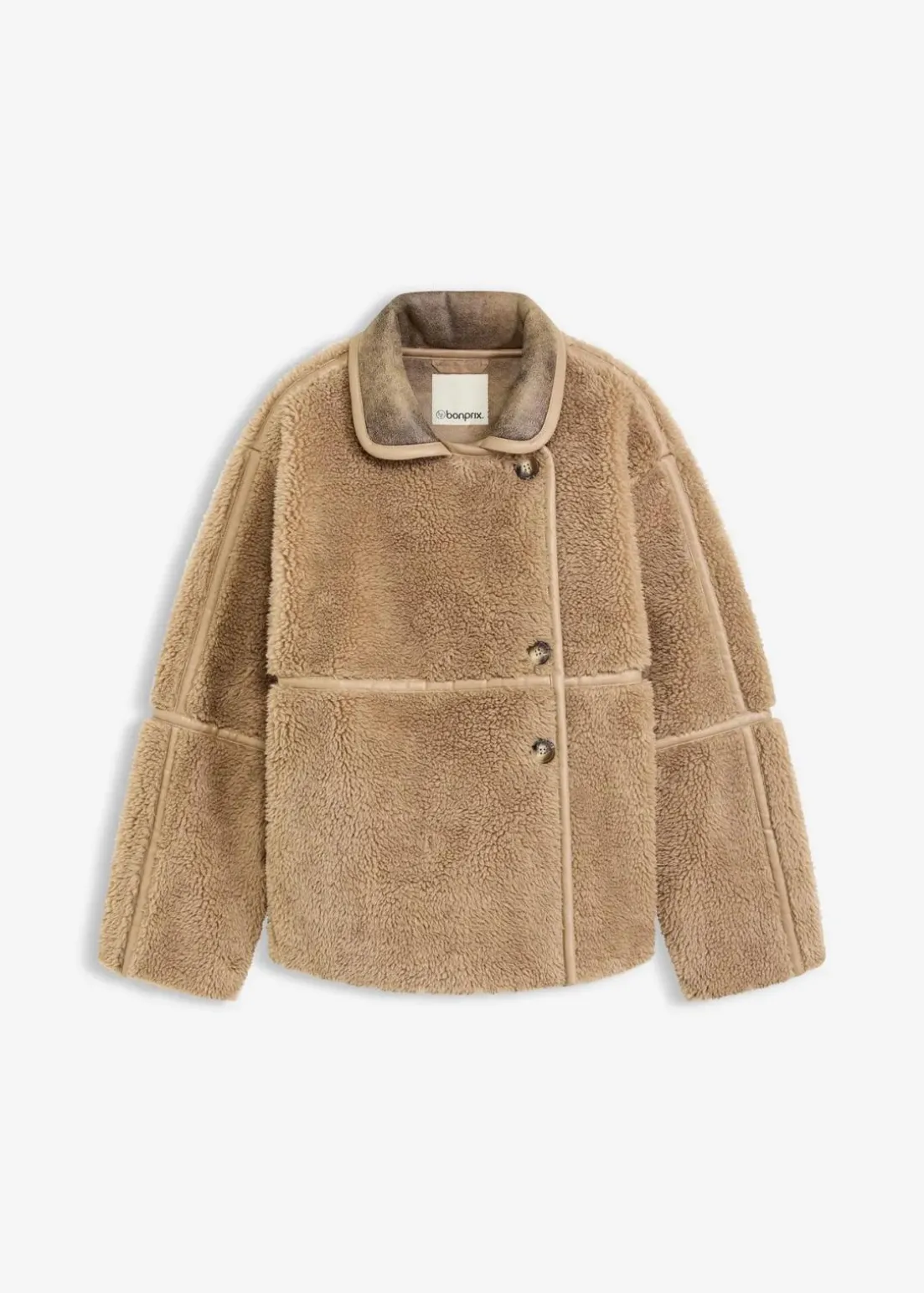 Weiche Jacke aus Teddyfell mit Paspel aus Lederimitat
